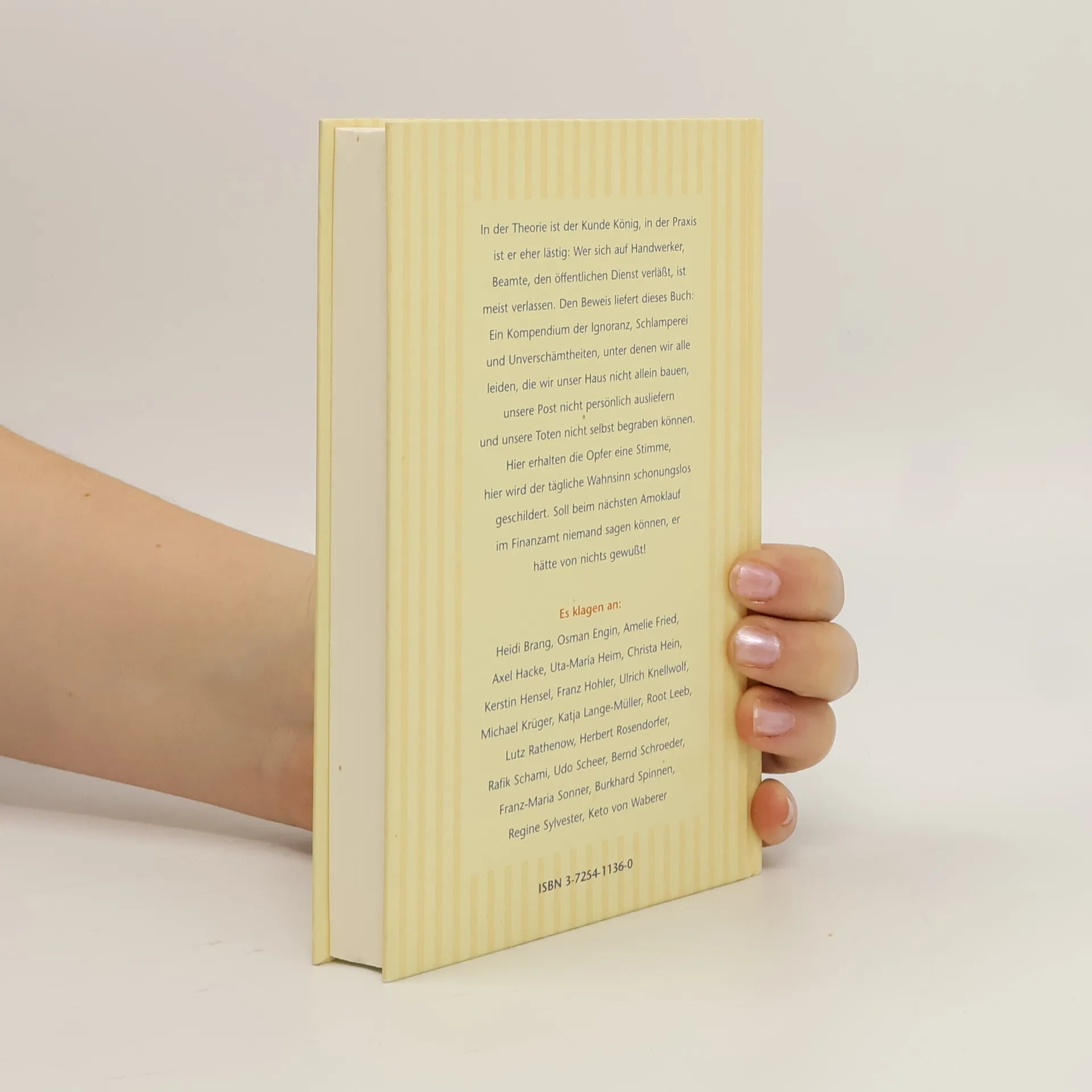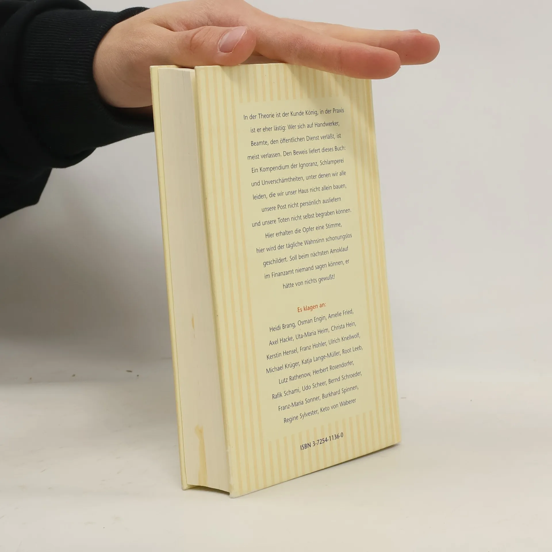 In der Theorie ist der Kunde König, in der Praxis ist er eher lästig: Wer sich auf Handwerker, Beamte, den öffentlichen Dienst verläßt, ist meist verlassen. Den Beweis liefert dieses Buch: Ein Kompendium der Ignoranz, Schlamperei und Unverschämtheiten, unter denen wir alle leiden, die wir unser Haus nicht allein bauen, unsere Post nicht persönlich ausliefern und unsere Toten nicht selbst begraben können. Hier erhalten die "Opfer" (unter ihnen Axel Hacke, Franz Hohler, Katja Lange-Müller, Herbert Rosendorfer und Keto von Waberer) eine Stimme, hier wird der tägliche Wahnsinn schonungslos geschildert. Soll beim nächsten Amoklauf im Finanzamt niemand sagen, er habe von nichts gewußt!