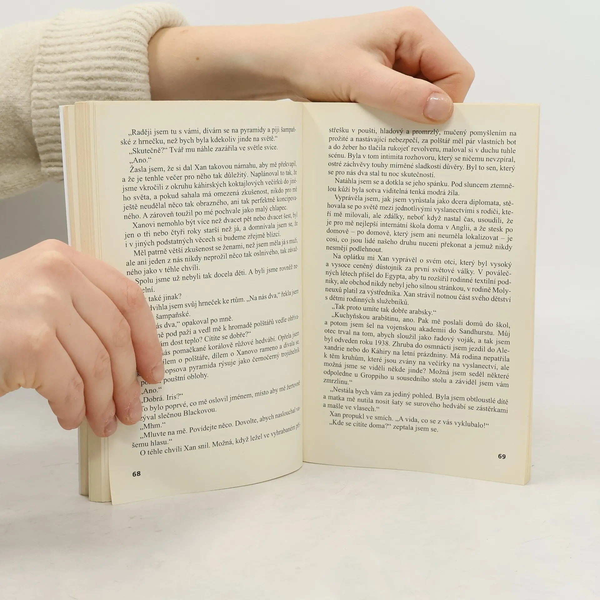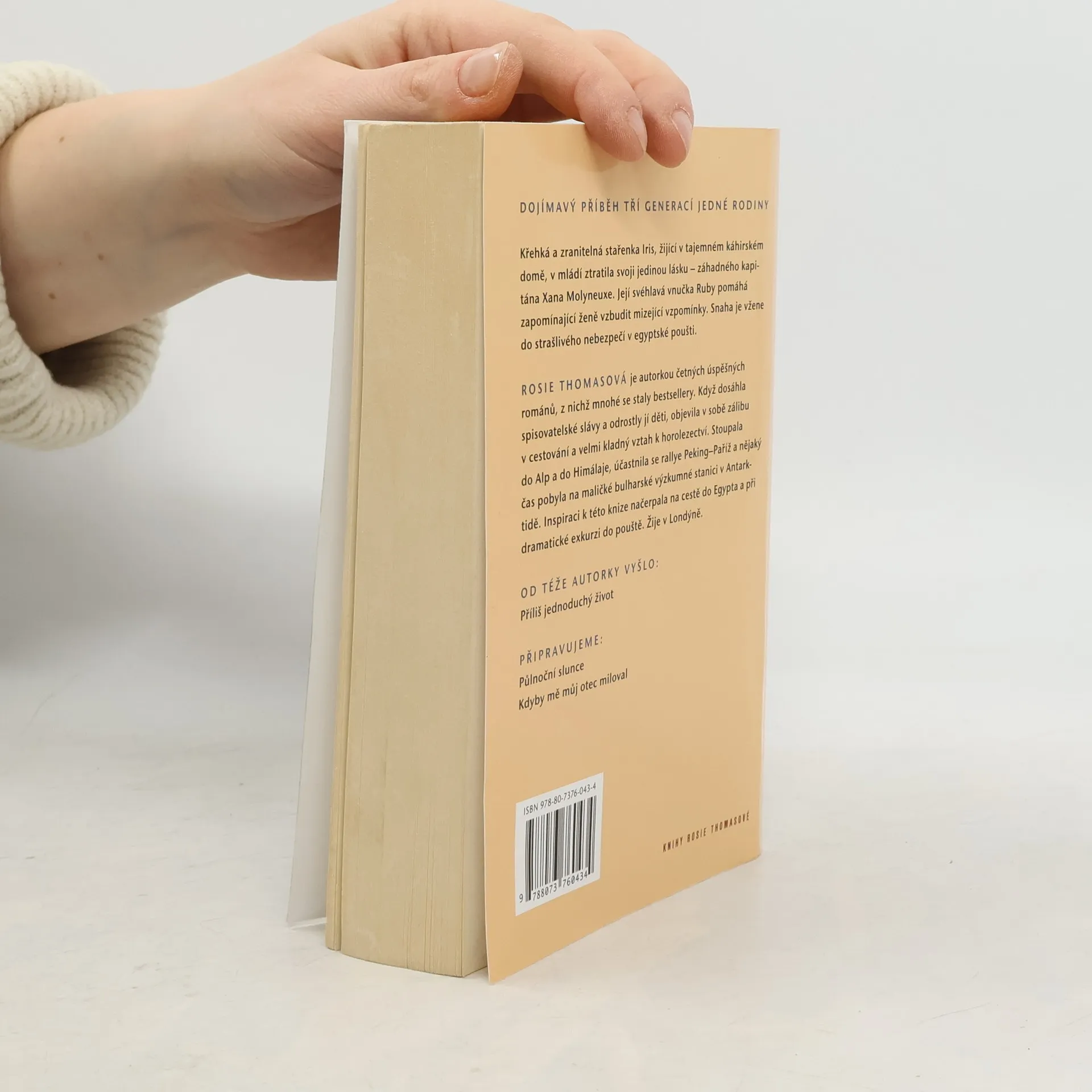 Vzrušující a vysoce dojímavý příběh, ve kterém se mísí láska, ztráta a vzdálenost mezi třemi generacemi jedné rodiny. Dvaaosmdesátiletá Iris, křehká, zapomnětlivá a zranitelná, je odkázána na péči svého služebníka Mamdooha. Do jejího zadušeného a klaustrofobii budícího starého domu v Káhiře neočekávaně vtrhne její problematická a svéhlavá vnučka Ruby. Poměry v rodině ji přiměly utéci z Anglie a hledat útěchu u své babičky, kterou už mnoho let neviděla. Mezi oběma ženami vzniká až nečekané pouto. Ruby Iris pomáhá zachytit mizející vzpomínky na třpytné kosmopolitní město, jakým byla Káhira za druhé světové války, kdy Iris potkala svoji jedinou skutečnou lásku - záhadného kapitána Xana Molyneuxe - a poté ho ztratila ve válečné vřavě. Pohroma, která tak záhy stihla Irisino srdce, ovlivnila život nejen jí, ale i její dceři a vnučce. Potřeba odkrýt Irisinu minulost a vybudovat Rubyině přítomnosti pevné základy dožene dvě ženy do strašlivého nebezpečí v egyptské poušti.