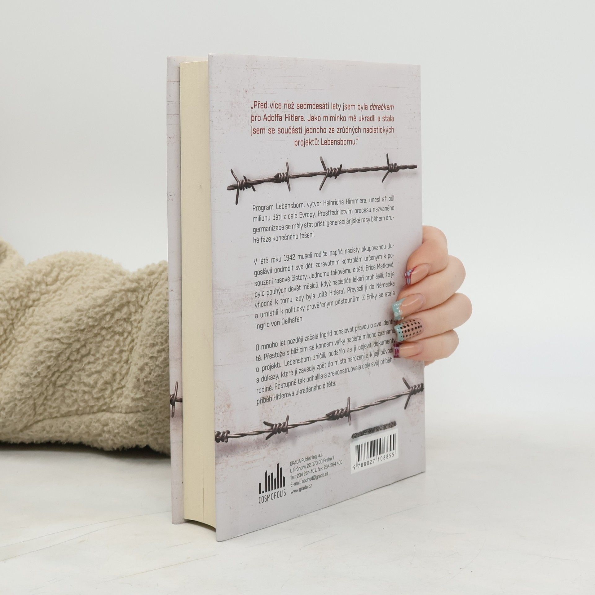 „Před více než 70 lety jsem byla dárečkem pro Adolfa Hitlera. Jako miminko mě ukradli a stala jsem se součástí jednoho ze zrůdných nacistických projektů: Lebensbornu.“ Program Lebensborn, výtvor Heinricha Himmlera, unesl až půl milionu dětí z celé Evropy. Prostřednictvím procesu nazvaného germanizace se měly stát příští generací árijské rasy během druhé fáze konečného řešení. V létě roku 1942 museli rodiče napříč nacisty okupovanou Jugoslávií podrobit své děti zdravotním kontrolám určeným k posouzení rasové čistoty. Jednomu takovému dítěti, Erice Matkové, bylo pouhých 9 měsíců, když nacističtí lékaři prohlásili, že je vhodná k tomu, aby byla „dítě Hitlera“. Převezli ji do Německa a umístili k politicky prověřeným pěstounům. Z Eriky se stala Ingrid von Oelhafen. O mnoho let později začala Ingrid odhalovat pravdu o své identitě. Přestože s blížícím se koncem války nacisté mnoho záznamů o projektu Lebensborn zničili, podařilo se jí objevit dokumenty a důkazy, které ji zavedly zpět do místa narození a k její původní rodině. Postupně tak odhalila a zrekonstruovala celý svůj příběh – příběh Hitlerova ukradeného dítěte.