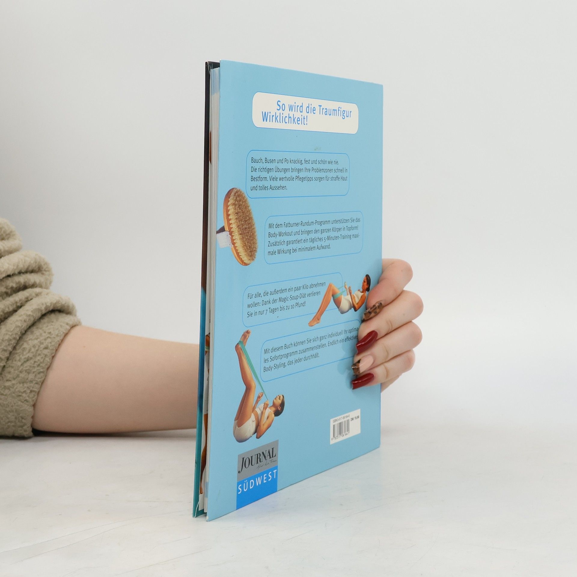 Fast jede Frau klagt über „ihre“ Probemzonen Bauch, Busen, Po. Sie sucht Übungen, die wirklich helfen und genaue Anleitungen, die nachvollziehbar sind. Das alles bietet das neue Buch von SÜDWEST, das in Zusammenarbeit mit JOURNAL FÜR DIE FRAU entsteht und alle dort veröffentlichten Übungen im Bild zeigt. Begeisterte Zuschriften der Leserinnen bestätigen den Erfolg. Nun erscheinen alle Übungen auch als Buch. Detailgenaue Bilder und Anleitungen helfen, alles richtig zu machen. Die motivierenden Texte spornen an und der rasche Erfolg hält bei der Stange.