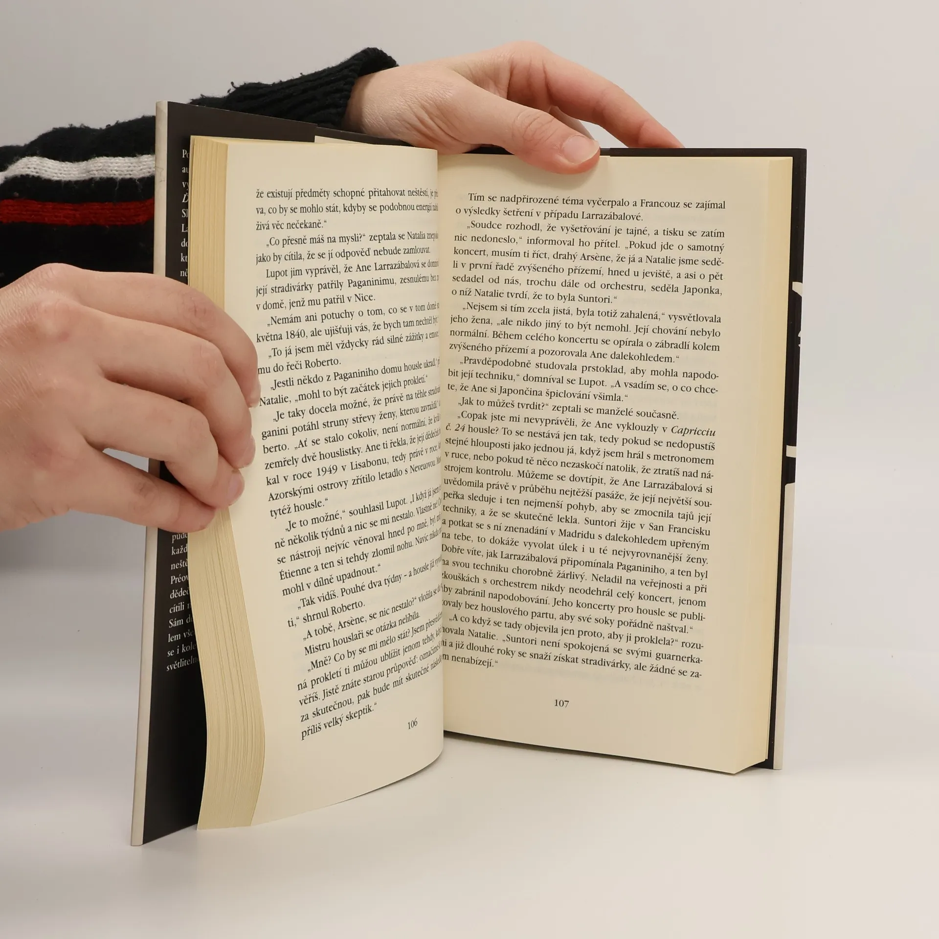 Nová „hudební detektivka“ španělského muzikologa a spisovatele začíná koncertem, po němž je slavná houslistka Ane Larrazábalová zavražděna, když dohrála náročnou skladbu Paganiniho – geniálního umělce, jehož virtuozitu i slávu údajně ovlivnilo spojení s ďáblem. Na těle je její vlastní krví napsáno iblís – arabsky ďábel. Zmizely i drahocenné housle. Vyšetřování se ujímá inspektor Perdomo; sleduje teroristickou stopu, poznává svět mistrů houslařů a umělecký svět plný intrik. Brzy se dozvídáme, že zmizelé stradivárky pocházely z pozůstalosti Paganiniho a housle pak všem majitelům přinesly jen neštěstí...