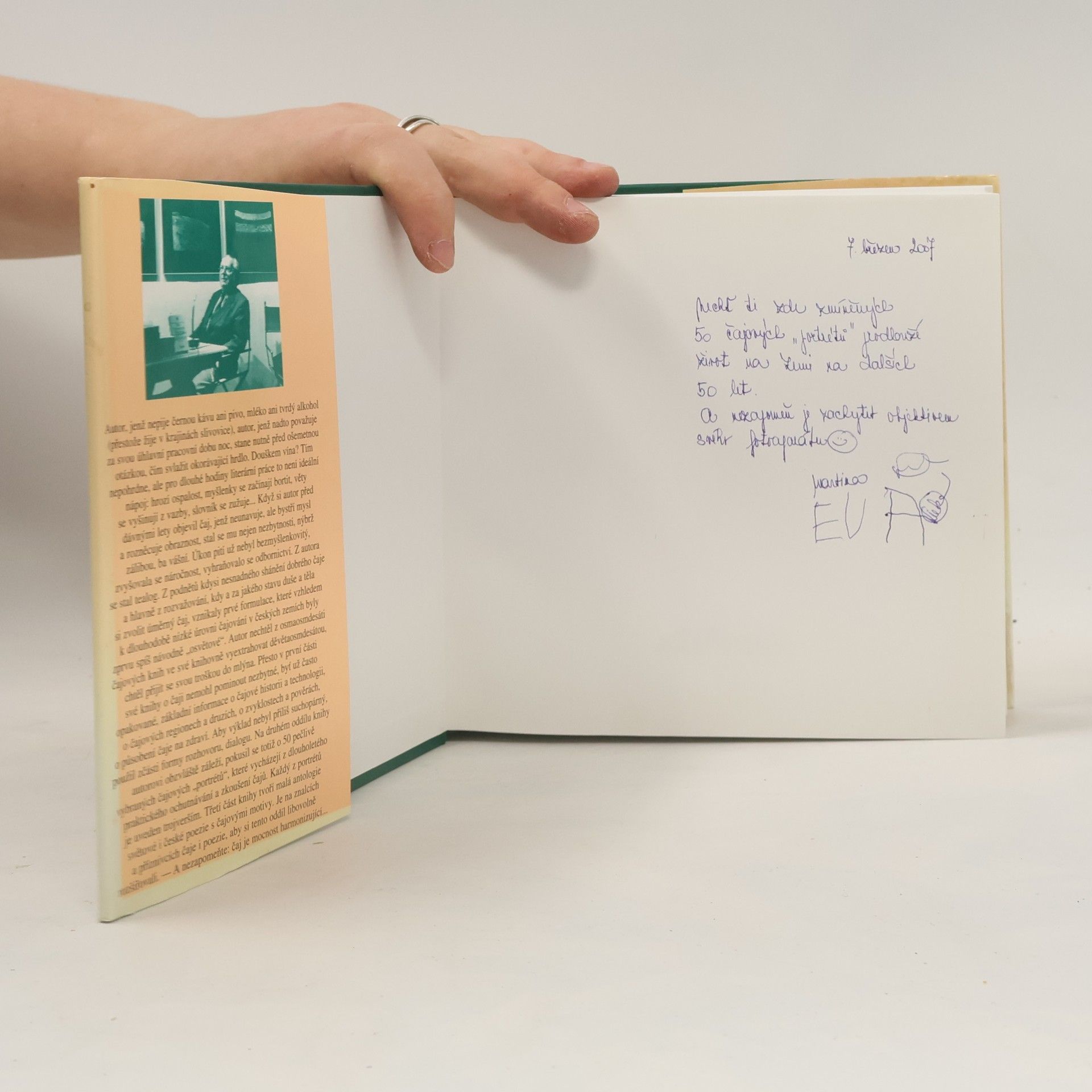 Téma, které bývá předmětem odborných pojednání, pojal spisovatel, překladatel a také čajový odborník Ludvík Kundera beletristicky. Svazek tvoří tři oddíly: 1. O čaji vůbec a zvláště, 2. Padesát pět čajových portrétů, 3. Antologie (výběr českých i světových básnických textů o čaji). Po historickém úvodu probírá Ludvík Kundera čajové regiony, podává přehled druhů čajů a jejich popis, předkládá receptury. Výklad se střídá s rozhovory, s „anketami“, s pokusy o rychlocharakteristiku, což vše souvisí se snahou upřesnit „čajovou češtinu“. Knihu provázejí reprodukce kreseb a obrazů s čajovou tematikou, ale i fotografie předmětů, které souvisejí s čajem. Poslední oddíl tvoří výběr světové poezie o čaji.