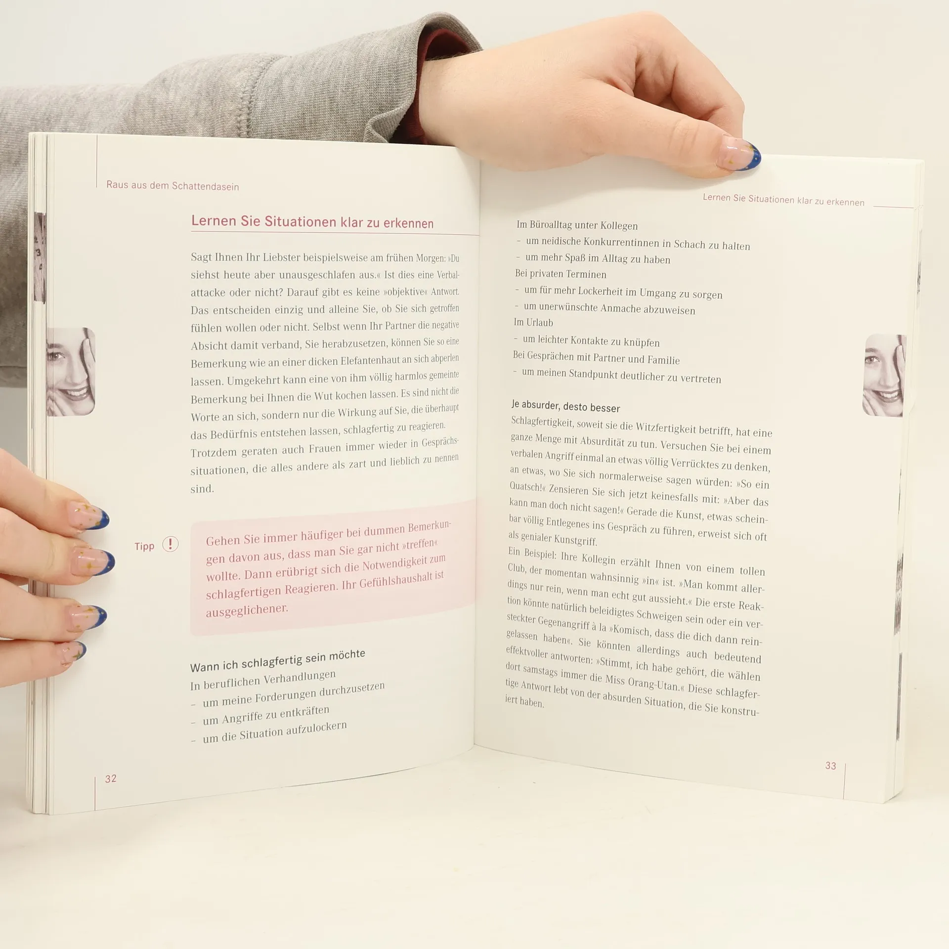 Nie wieder sprachlos! Die richtige Idee zur richtigen Zeit: auch das kann man lernen. Anhand von vielen Fallbeispielen aus seiner Praxis zeigt der erfolgreiche Schlagfertigkeitstrainer Matthias Pöhm, dass Schlagfertigkeit - entgegen der landläufigen Meinung - auch Frauensache ist. Hier werden Übungen vorgestellt, die gezielt das Vokabular erweitern und die Reaktionszeiten verringern.