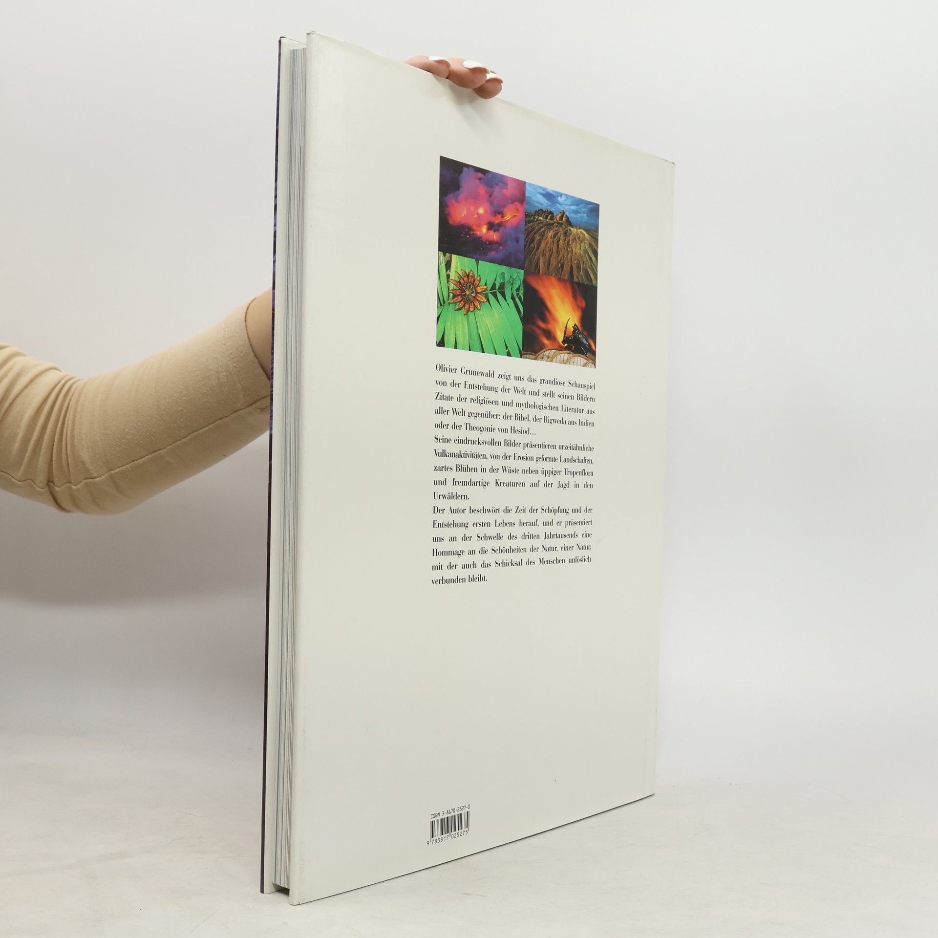 Olivier Grunewald durchstreift die Welt seit über zwanzig Jahren auf der Suche nach außergewöhnlichen Motiven und besonderen Lichteffekten. Ausbeute dieser fotografischen Forschungsreisen sind Bilder voll Emotoion; sie zeigen die Magie des Nordlichtes, das Innere des Vulkans oder den Blick aus dem Wipfel eines Baumes über den Tropenwald. Olivier Grunewald zeigt uns das grandiose Schauspiel von der Entstehung der Welt. Seine eindrucksvollen Bilder präsentieren urzeitähnliche Vulkanaktivitäten, von der Erosion geformte Landschaften, zartes Blühen in der Wüste neben üppiger Tropenflora und fremdartige Kreaturen auf der Jagd in den Urwäldern. An der Schwelle des dritten Jahrtausends ist dieses Buch eine Hommage an die Schönheiten der Natur.