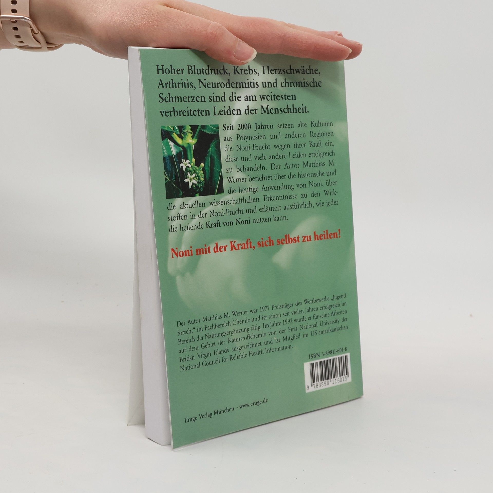 Hoher Blutdruck, Krebs, Herzschwäche, Arthritis, Neurodermits und chronische Schmerzen sind die am weitesten verbreiteten Leiden der Menschheit. Seit 2000 Jahren setzen alte Kulturen aus Polynesien und anderen Regionen die NONI Frucht wegen ihrer Kraft ein, diese und viele andere Leiden erfolgreich zu behandeln. Der Autor Matthias M. Werner berichtet über die historische und die heutige Anwendung von NONI, über die aktuellen wissenschaftlichen Erkenntnisse zu den Wirkstoffen in NONI und wie jeder die heilende Kraft von NONI nutzen kann.