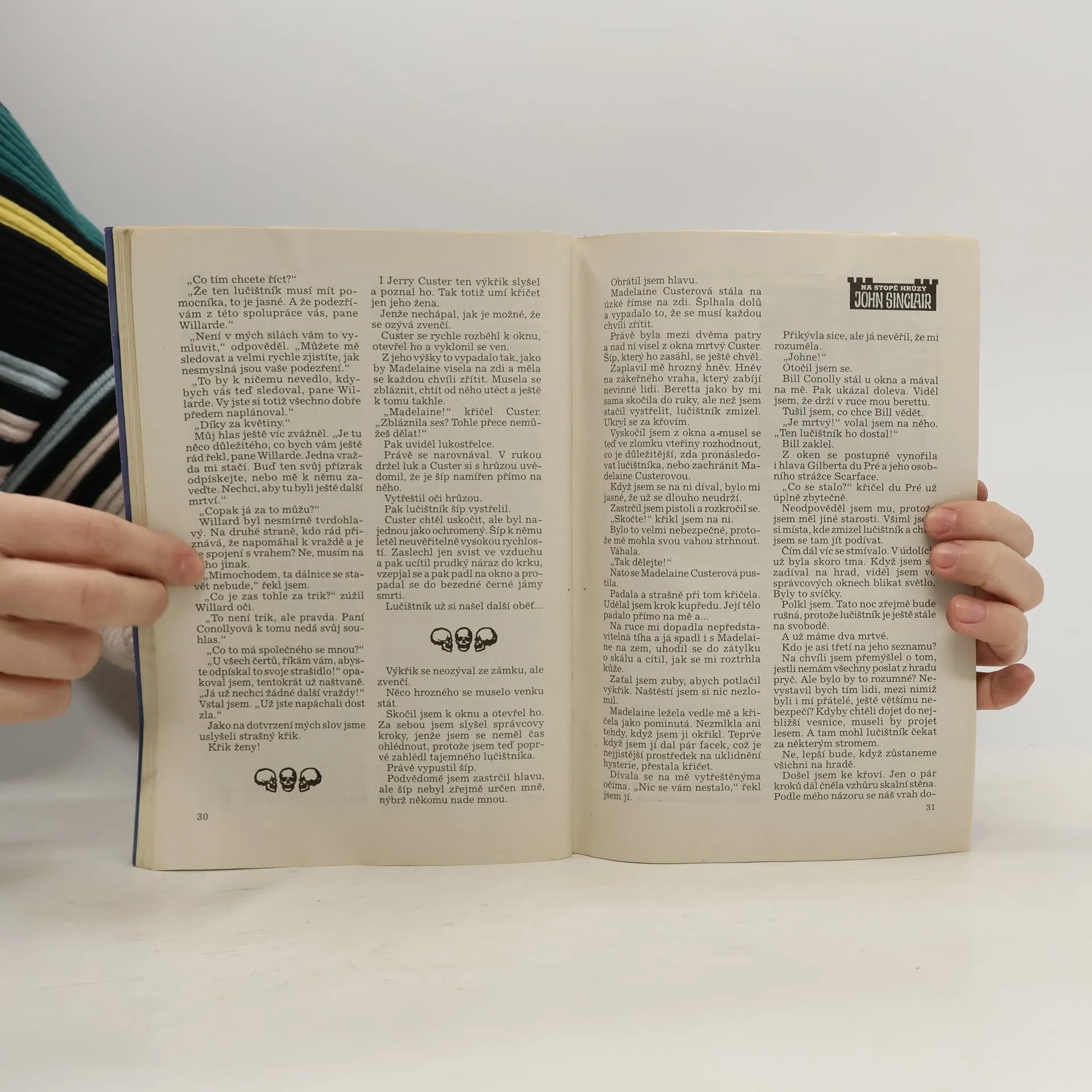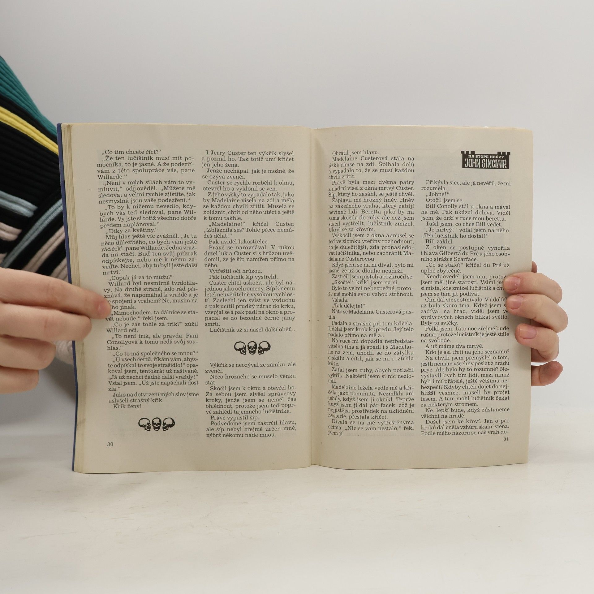 V očích toho muže to zle zablýskalo, když se díval z okna. ,,Já to dokážu, ´´ zašeptal. ,,Nenechám si zničit svůj hrad. A jestli se o to pokusí, draze mi za to zaplatí. Přijdou všichni nařadu. Jeden po druhém…´´ Pokyvoval spokojeně hlavou a mnul si zpocené dlaně. Nemusel si sám hrát na mstitele. Na to měl někoho jiného. Svého ďábelského komplice. Tajemného lučistníka!