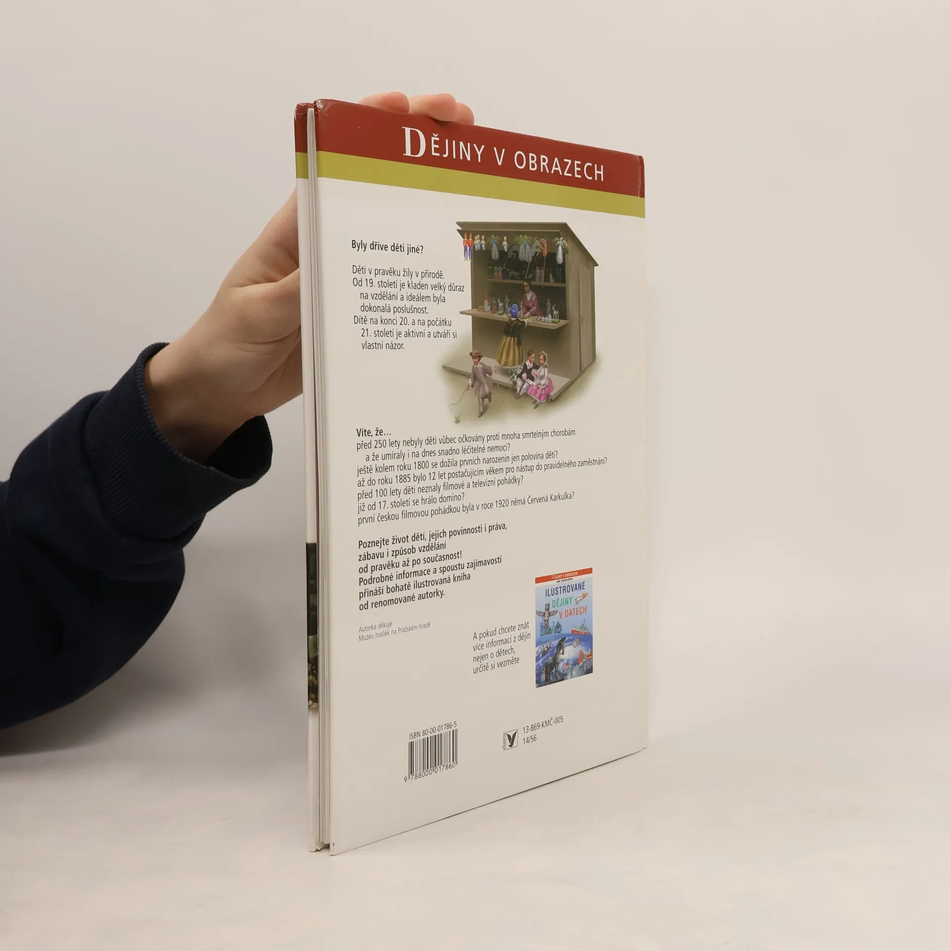 Doplněk k čtrnáctidílnému cyklu Dějiny v obrazech. Je věnován dítěti a dětství v průběhu dějin od pravěku až do současnosti. Knížka zobrazuje dítě v rodině, ve škole, ve světě; zmiňuje se o dětském oblékání, stravování, ukazuje dětské hračky a hry. Stejně jako Dějiny v obrazech je i tato publikace koncipována do tematických dvoustran plných barevných obrázků, které znázorňují proměny dětského světa a postavení dítěte ve společnosti. Doporučujeme také jako doplňkovou učebnici pro dějepis a občanskou výchovu na základních školách.