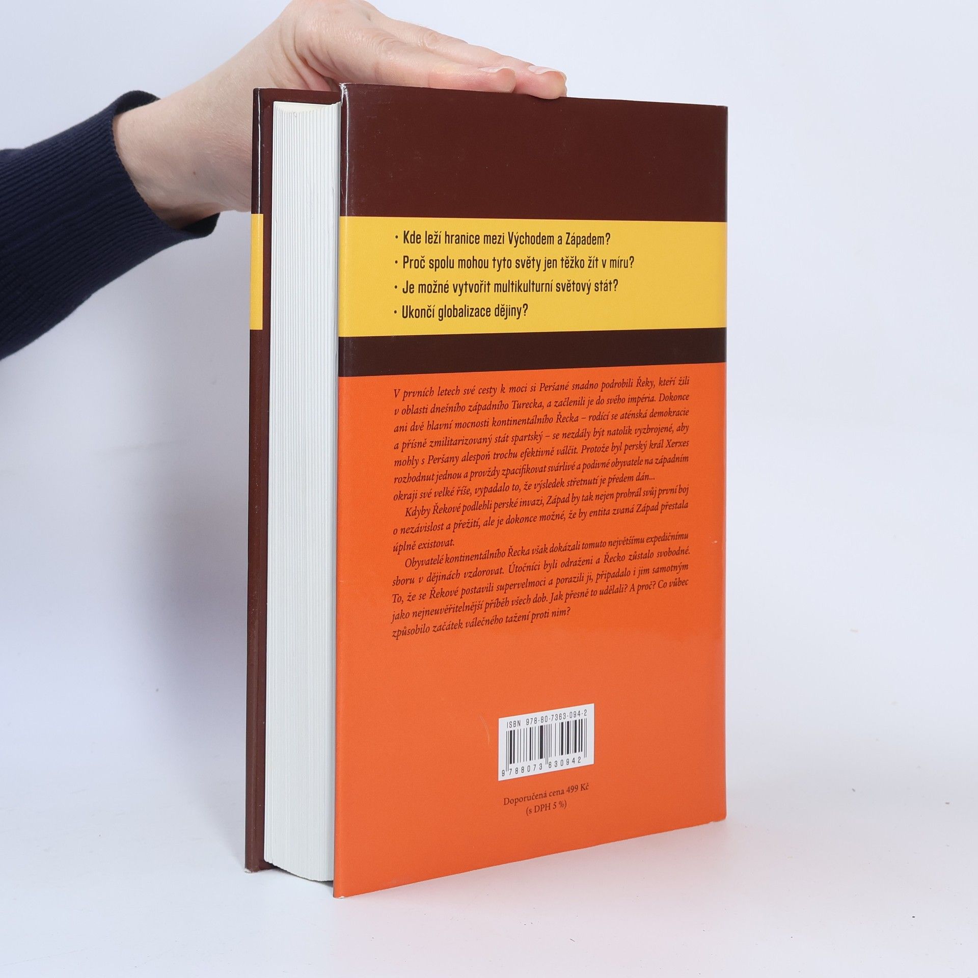 Východ a Západ se spolu poprvé utkaly před 2 500 lety. Počátkem 5. století př. n. l. se jistá globální supervelmoc rozhodla přimět dva státy, které vnímala jako teroristické, k poctivosti a pořádku. Onou supervelmocí byla Persie. Její králové založili první impérium světa, které ve své době nemělo konkurenta. Za teroristické státy byly považovány Atény a Sparta, dvě výstřední města v chudé, hornaté a zaostalé zemi jménem Řecko. Příběh o tom, jak se jejich obyvatelé postavili nejmocnějšímu muži planety a porazili jej, patří k nejpoutavějším epizodám lidských dějin.
