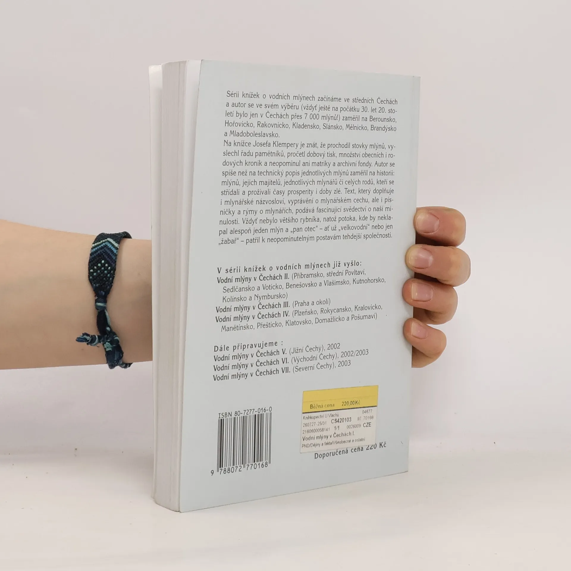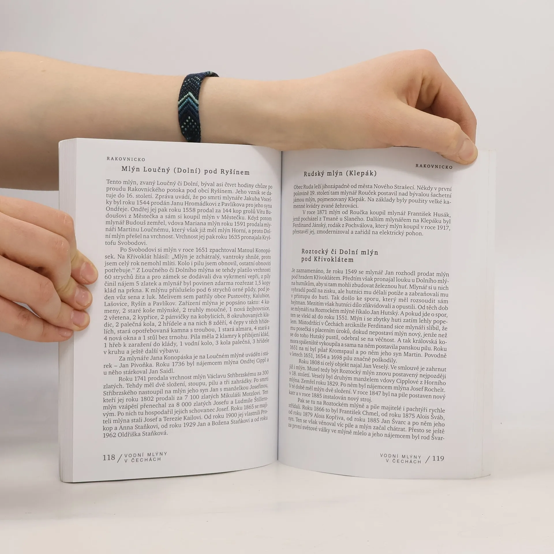 Berounsko, Hořovicko, Rakovnicko, Kladensko, Slánsko, Mělnicko, Brandýsko a Mladoboleslavsko. Série knížek o vodních mlýnech začíná ve středních Čechách a autor se ve svém výběru (vždyť ještě na počátku 30. let 20. století bylo jen v Čechách přes 7 000 mlýnů) zaměřil na Beruonsko, Hořovicko, Rakovnicko, Kladensko, Slánsko, Mělnicko, Brandýsko a Mladoboleslavsko. Autor se spíše než na technický popis jednotlivých mlýnů zaměřil na historii: mlýnů, jejich majitelů, jednotlivých mlynářů či celých rodů, střídajících se a prožívajících časy prosperity i doby zlé. Text, který doplňuje i mlynářské názvosloví, vyprávění o mlynářském cechu, ale i písničky a rýmy o mlynářích, podává fascinující svědectví o naší minulosti.