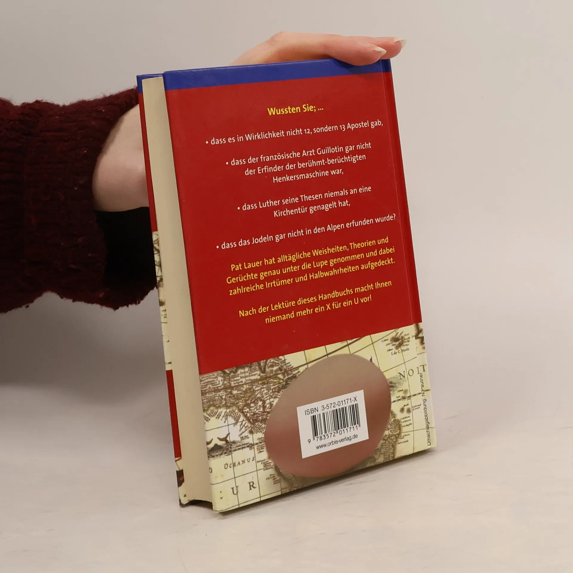 Wussten Sie, ... - dass es in Wirklichkeit nicht 12, sondern 13 Apostel gab, - dass der französische Arzt Guillotin gar nicht der Erfinder der berühmt-berüchtigten Henkersmaschine war, - dass Luther seine Thesen niemals an eine Kirchentür genagelt hat, - dass das Jodeln gar nicht in den Alpen erfunden wurde? Pat Lauer hat alltägliche Weisheiten, Theorien und Gerüchte unter die Lupe genommen und dabei zahlreiche Irrtümer und Halbwahrheiten aufgedeckt.