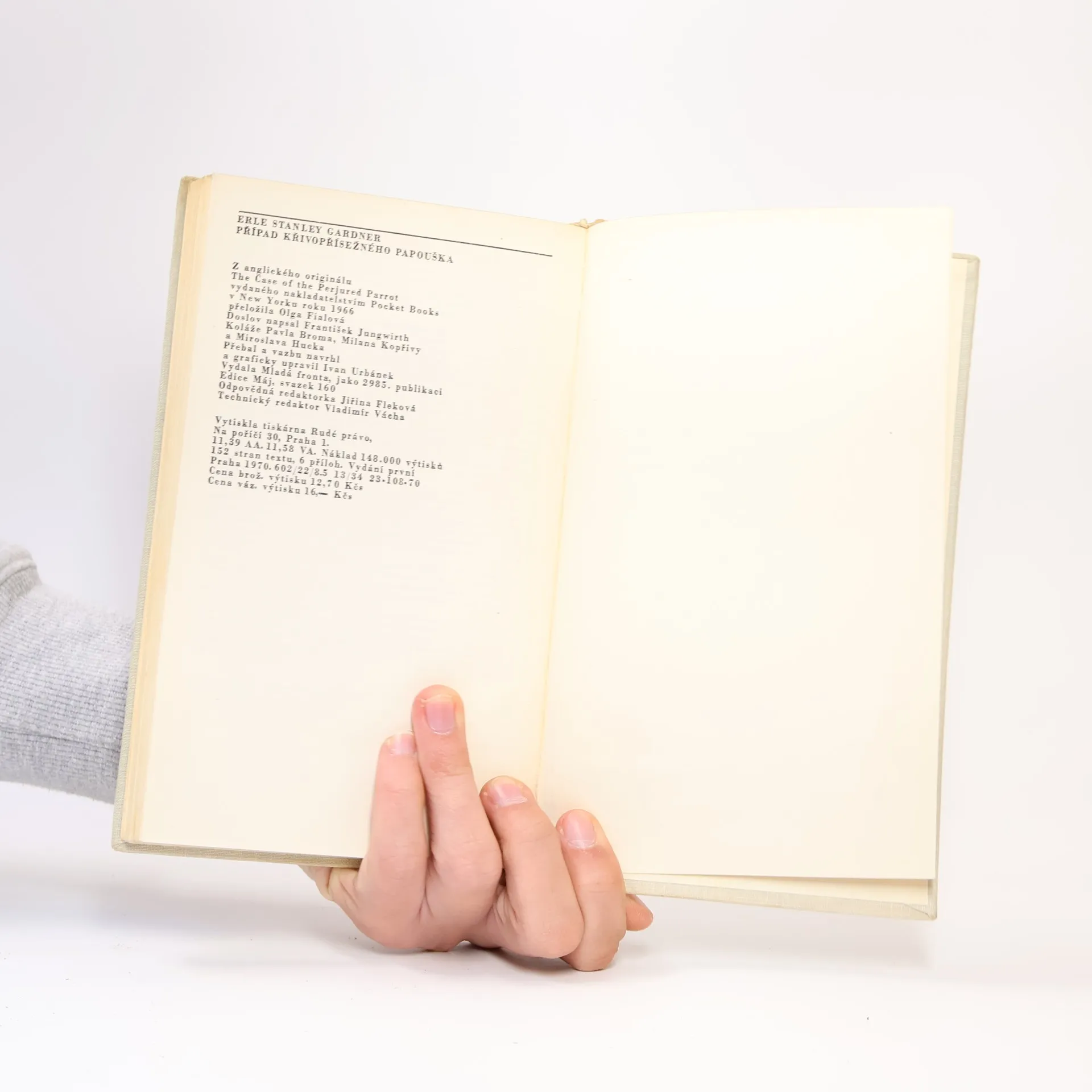 Dějově komplikovaný detektivní příběh, jehož objasnění je ztíženo falešným svědectvím mluvícího papouška. Situaci, v níž se ocitla mladá žena obviněná z vraždy svého manžela, řeší po právní i logické stránce slavný advokát Perry Mason se svými spolupracovníky a jako vždy itentokrát jeho brilantní dedukce vede k odhalení skutečného pachatele. 23-108-70