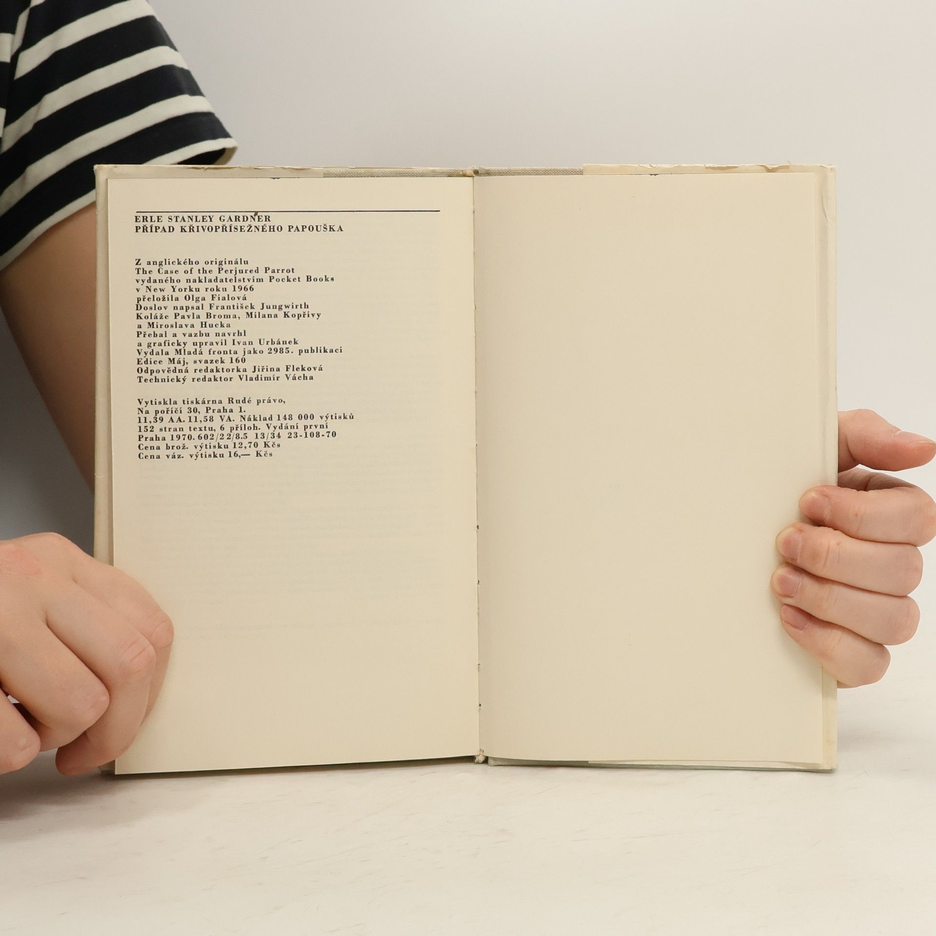Dějově komplikovaný detektivní příběh, jehož objasnění je ztíženo falešným svědectvím mluvícího papouška. Situaci, v níž se ocitla mladá žena obviněná z vraždy svého manžela, řeší po právní i logické stránce slavný advokát Perry Mason se svými spolupracovníky a jako vždy itentokrát jeho brilantní dedukce vede k odhalení skutečného pachatele. 23-108-70