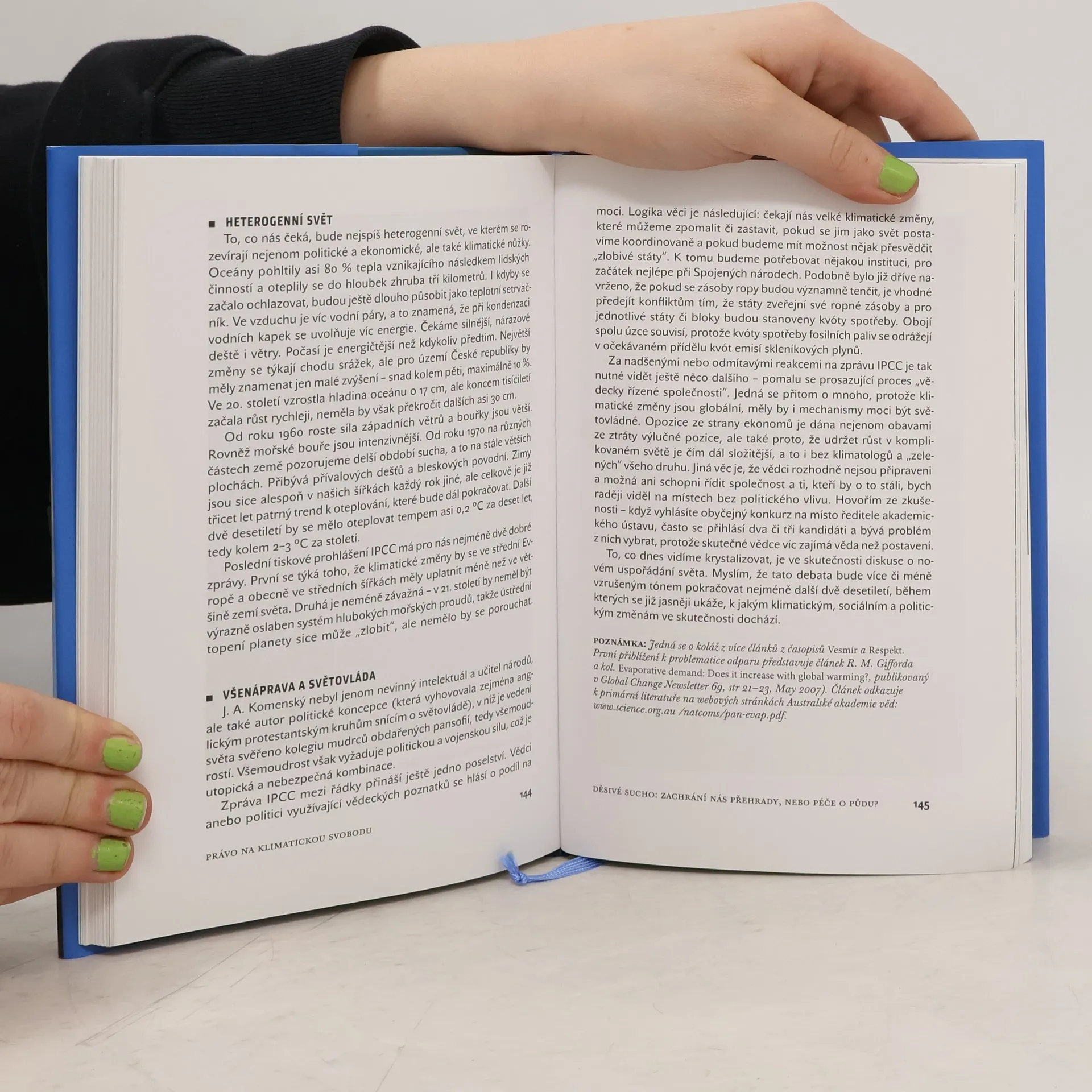 Václav Cílek v této knize navazuje na předešlá díla, především na Krajiny vnitřní a vnější (2002, rozšířené vydání 2005) a Makom. Kniha míst (2004, rozšířené vydání 2007). Zabývá se znovu krajinou a místy, životním prostředím a klimatem. Dokonce se opatrně věnuje „popisu světa při velkém skoku dopředu, při kterém jsme se víc soustředili na výkon než na to, kam skáčeme...“ Knihu doplňují kromě fotografií také ilustrace z pozůstalosti malířky Olgy Karlíkové, která třicet let poslouchala zpěv ptáků a soustředěně jej zaznamenávala.