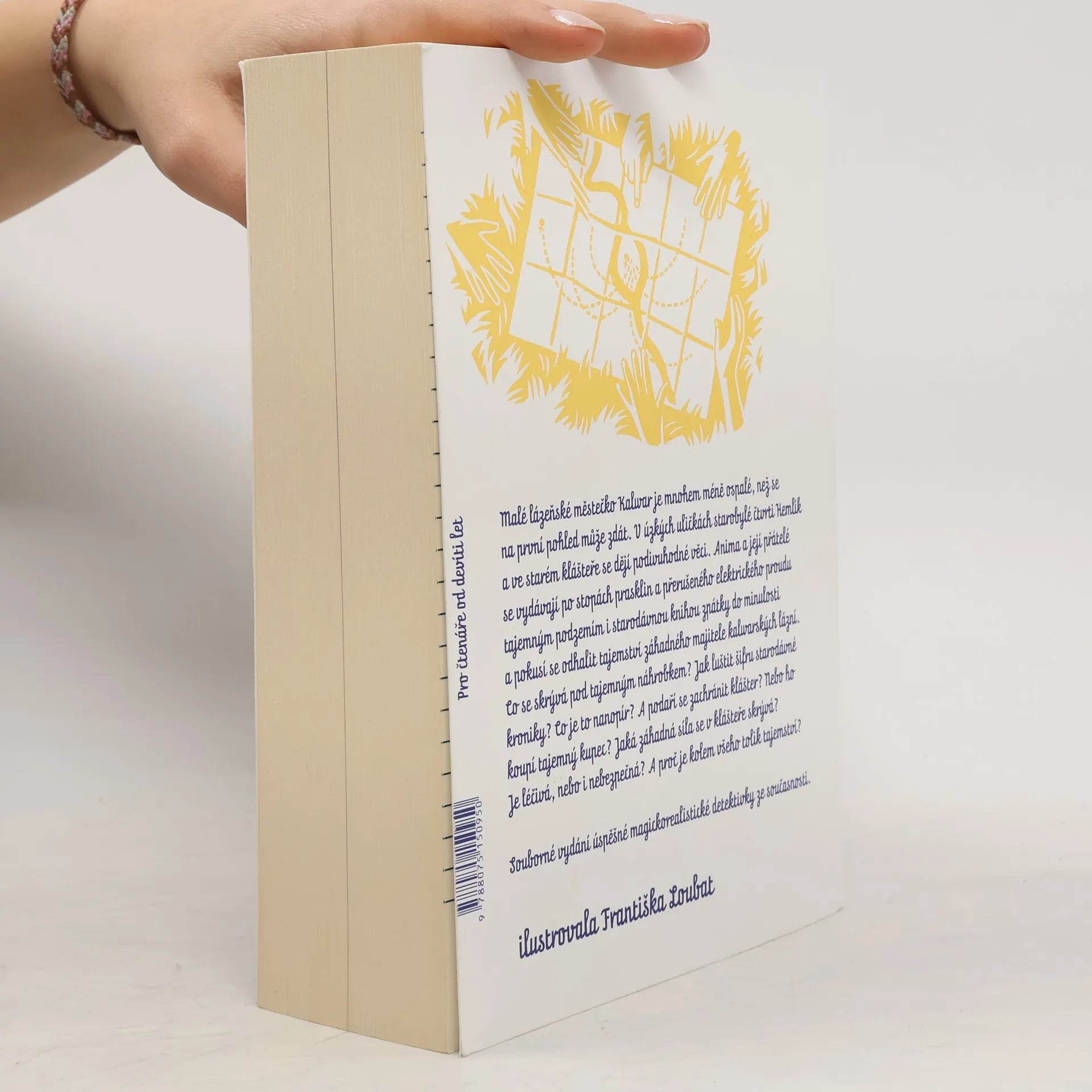 Malé lázeňské městečko Kalwar je mnohem méně ospalé, než se na první pohled může zdát. V úzkých uličkách starobylé čtvrti Hemlík a ve starém klášteře, kam chodí dvanáctiletá Anima na výtvarné kurzy, se dějí podivuhodné věci. Anima a její přátelé se vydávají po stopách prasklin a přerušeného elektrického proudu tajemným podzemím i starodávnou knihou zpátky do minulosti a pokusí se odhalit tajemství záhadného majitele kalwarských lázní. Co se skrývá pod tajemným náhrobkem? Jak luštit šifru starodávné kroniky? Co je to nanopír? A podaří se zachránit klášter? Nebo ho koupí tajemný kupec? Jaká záhadná síla se v klášteře skrývá? Je léčivá, nebo i nebezpečná? A proč je kolem všeho tolik tajemství? Svou roli v nečekaném dobrodružství hrají Výzkumný ústav papíru, ploutvové plavání, léčivé prameny, ředitel Lampička, učitelka Gealová, tajemný dr. Janota, podivuhodný drak a samozřejmě především děti… Souborné vydání úspěšné magickorealistické detektivky ze současnosti. Pro děti od 9 let.