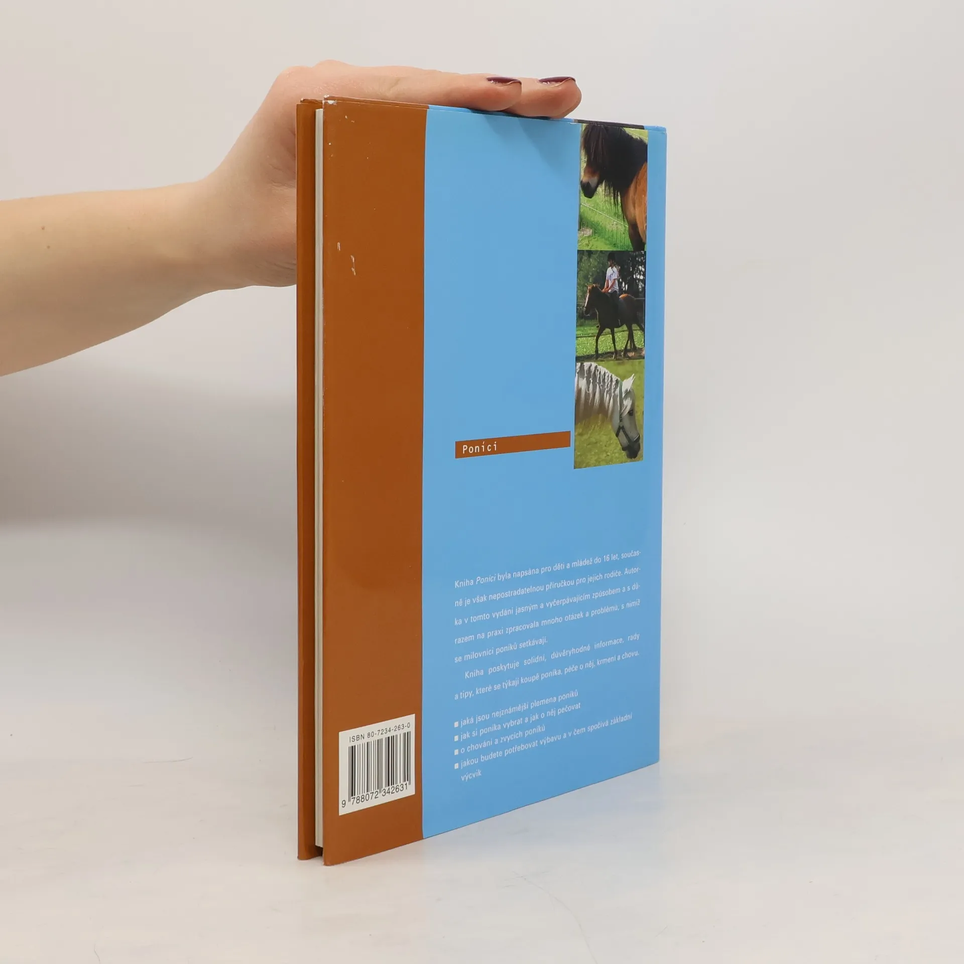 Kniha Poníci byla napsána pro děti a mládež do 16 let, současně je však nepostradatelnou příručkou pro jejich rodiče. Autorka v tomto vydání jasným a vyčerpávajícím způsobem a s důrazem na praxi zpracovala mnoho otázek a problémů, s nimiž se milovníci poníků setkávají. Kniha poskytuje solidní, důvěryhodné informace, rady a tipy, které se týkají koupě poníka, péče o něj, krmení a chovu.