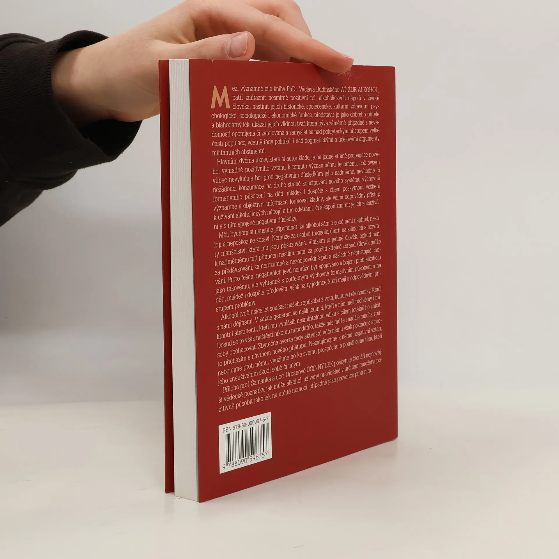Mezi cíle knihy PhDr. Václava Budinského patří zdůraznit nesmírně pozitivní roli alkoholických nápojů v životě člověka a nastínit jejich historické, společenské, kulturní, zdravotní, psychologické, sociologické i ekonomické funkce - zkrátka ukázat jejich vlídnou tvář, která bývá někdy záměrně a někdy z nevědomosti opomíjena či zatajována. Autor je toho názoru, že řešení negativních jevů, spojených s alkoholem, netkví v boji pro alkoholu jako takovému, ale pouze v zodpovědném přístupu k jeho konzumaci. Příloha prof. Šamánka a doc. Urbanové Účinný lék poskytuje čtenáři nejnovější vědecké poznatky o pozitivní roli alkoholu při léčení řady nemocí a o jeho preventivní úloze při jejich předcházení. Předmluvu napsal prof. MUDr. Rostislav Vyzula, CSc., předseda Výboru pro zdravotnictví Poslanecké sněmovny parlamentu České republiky.