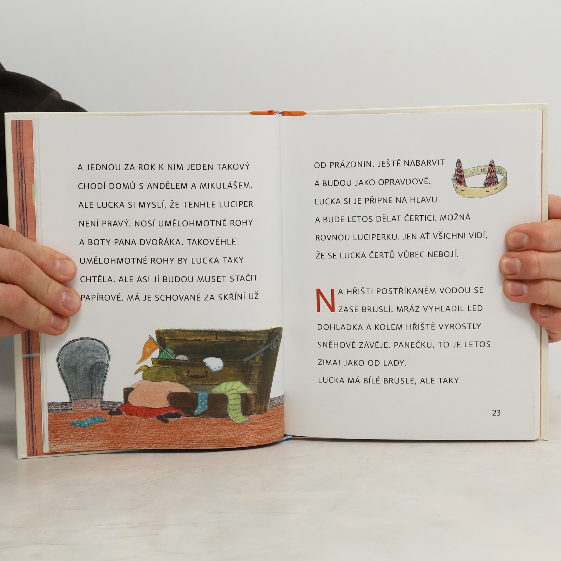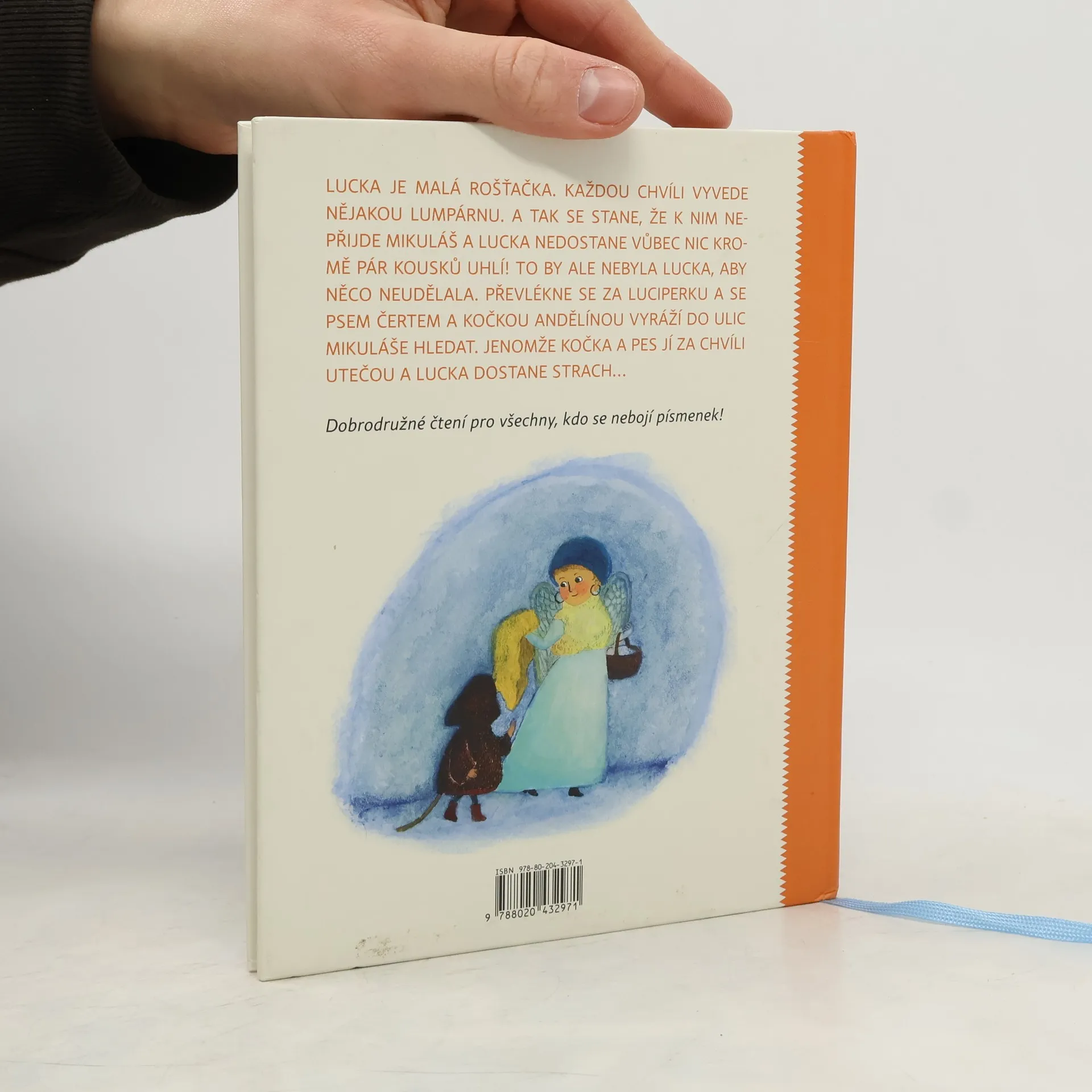 Mikulášský příběh o jedné malé neposlušné prvňačce. Pro začínající čtenáře. Lucka chodí do 1. A, je to největší zlobidlo ve třídě. Kvůli jejímu zlobení jí dokonce Mikuláš nadělí jen brambory a uhlí. Nic víc. To ale Lucku dopálí tak, že se vypraví za Mikulášem sama.