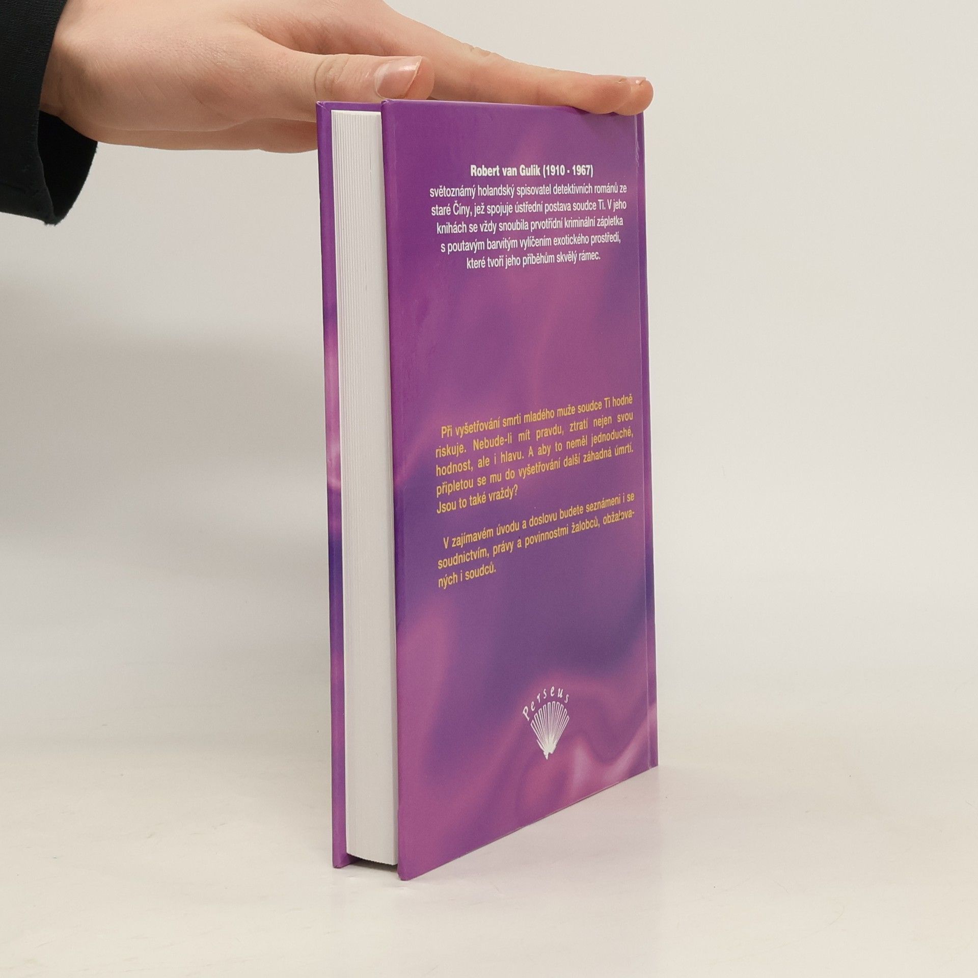 Při vyšetřování smrti mladého muže soudce Ti hodně riskuje. Nebude-li mít pravdu, ztratí nejen svou hodnost, ale i hlavu. A aby to neměl jednoduché, připletou se mu do vyšetřování další záhadná úmrtí. Jsou to také vraždy? Slavné případy soudce Ti je anotovaný překlad knihy napsané v osmnáctém století. Překladatel byl Robert van Gulik a originál byl tištěný v Tokiu. Později van Gulik navázal dalšími, tentokrát již svými příběhy se soudcem Ti.
