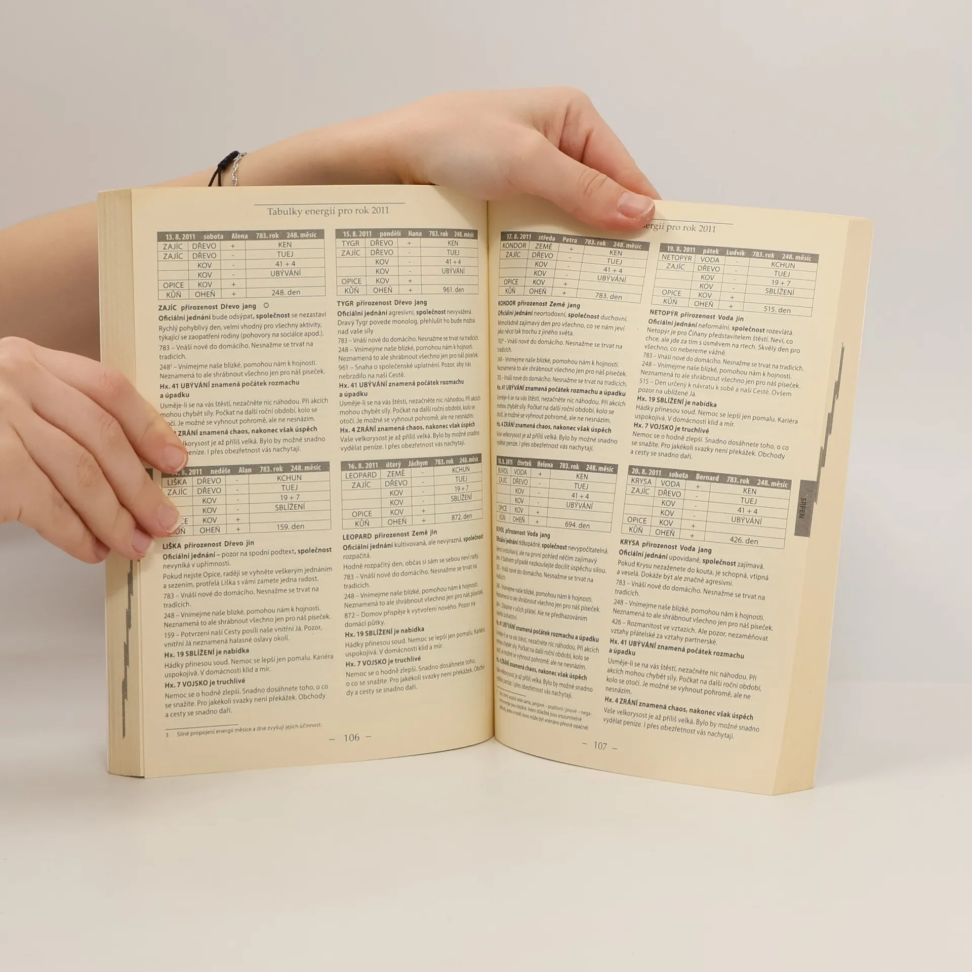 Žijeme ve věku vědeckých informací, nicméně stále více se obracíme k empirickým znalostem našich předků. Dlouho se zatracovala původní dávná umění ve jménu Vědy. Pokusy a omyly jsme museli dojít k poznání, že mezi nebem a zemí se vyskytují oblasti, které se jaksi do šuplíků současné Vědy nevejdou. Jedním z vědění dávných dob je tajemné čínské umění starých Mistrů – HAM YU. Přináší nám informace z obrovské šíře. Střípek z nich přináší kniha energií dní pro rok 2011 – Rok Kovového zajíce. Poprvé dostáváte do rukou jedinečné údaje tří cyklů Letící hvězdy, využívané v dnes moderním FENG SHUI. Využití časoprostorových informací se ale vztahuje i k medicíně a obecně všem oblastem našeho života. V příštích knihách energií dní budeme postupně rozšiřovat pohled na tyto oblasti tak, abychom dokázali náš život opravdu řídit, stejně jako řídíme auto podle nápovědy navigace. Kovový zajíc přebírá vládu od Kovového tygra. Bude vládnout čtvrtému roku velmi zajímavého období: - období posledního dvanáctiletí Země - období posledního šedesátiletí - období prvního stoosmdesátiletí - období nového devítisetletí.