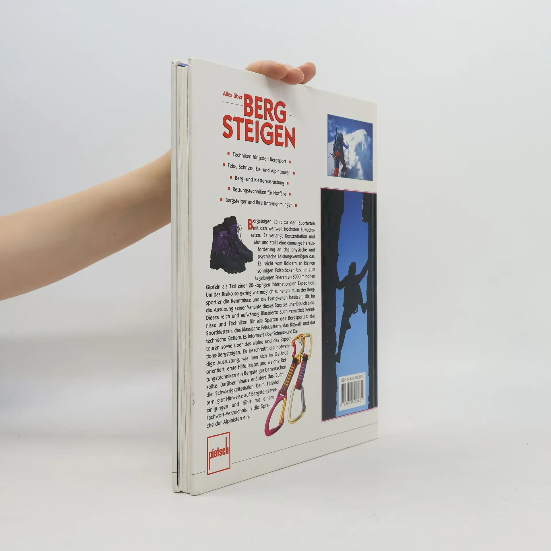 Bergsteigen boomt. Längst zählt es zu den Sportarten mit den weltweit höchsten Zuwachsraten. Die Gründe dafür sind so vielfältig wie die Bergsportdisziplinen, die es mittlerweile gibt. Es verlangt Konzentration und Mut und stellt eine einmalige Herausforderung an das physische und psychische Leistungsvermögen dar. Es reicht vom Bouldern an kleinen sonnigen Felsblöcken bis hin zum tagelangen Frieren an 8000 m hohen Gipfeln als Teil einer 20-köpfigen internationalen Expedition. Um das Risiko dieses Sportes so gering wie möglich zu halten, muss der Bergsportler das Know-how und die Fertigkeiten besitzen, die für die Ausübung seiner Variante dieses Sportes unerlässlich sind. In diesem reich und aufwändig illustrierten Buch vermittelt der vielseitige und erfahrene Bergsteiger Garth Hattingh Kenntnisse und Techniken für alle Sparten des Bergsportes: das Sportklettern, das klassische Felsklettern, das Bigwall- und das technische Klettern. Er informiert über Schnee- und Eistouren sowie über das alpine und das Expeditions-Bergsteigen. Er beschreibt die benötigte Ausrüstung, wie man sich im Gelände orientiert, erste Hilfe leistet und welche Rettungstechniken ein Bergsteiger beherrschen sollte. Er erläutert die Schwierigkeitsskalen beim Felsklettern, gibt Hinweise auf Bergsteigervereinigungen und führt mit einem Fachwort-Verzeichnis in die Sprache der Alpinisten ein.