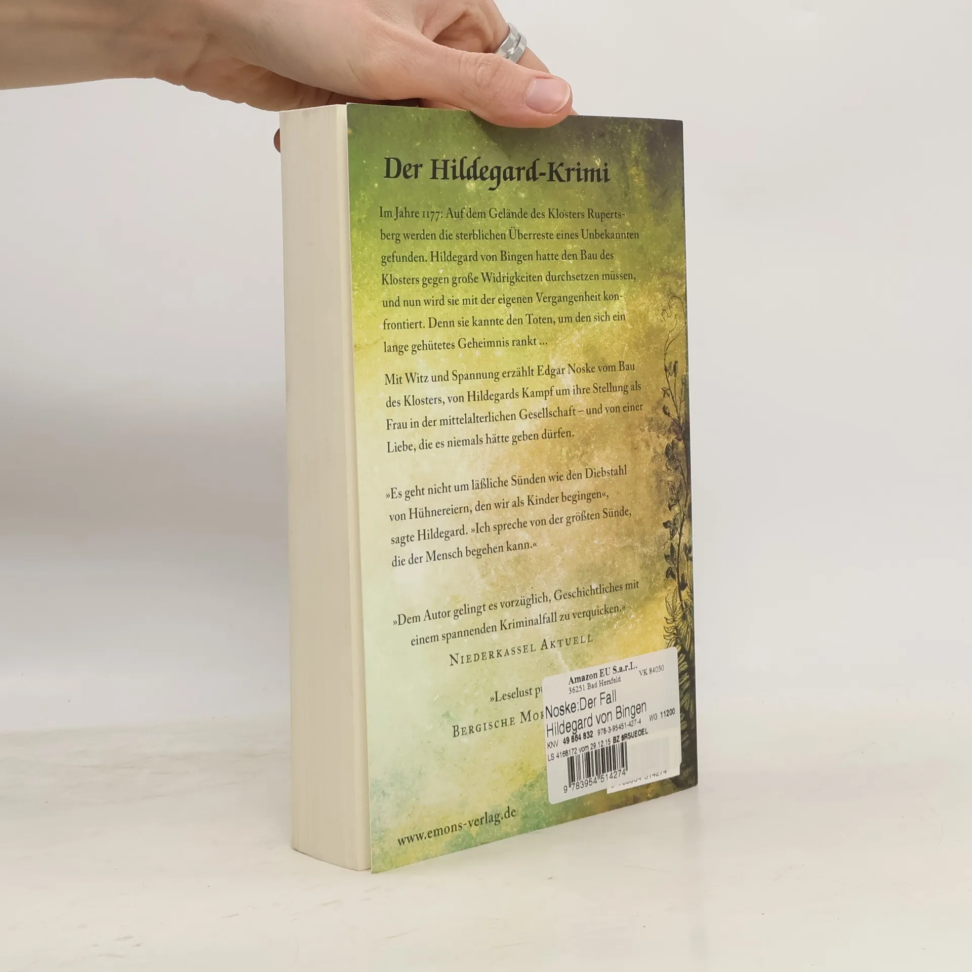 Auf dem Gelände des Klosters Rupertsberg werden die sterblichen Überreste eines Unbekannten gefunden. Äbtissin Hildegard von Bingen gelingt es, die Identität des Toten zu klären und damit einem düsteren, lange zurückliegenden Geheimnis auf die Spur zu kommen. Ein herrliches Sittengemälde der intriganten und so gar nicht frommen Klosterlandschaft des Mittelalters von Erfolgsautor Edgar Noske.