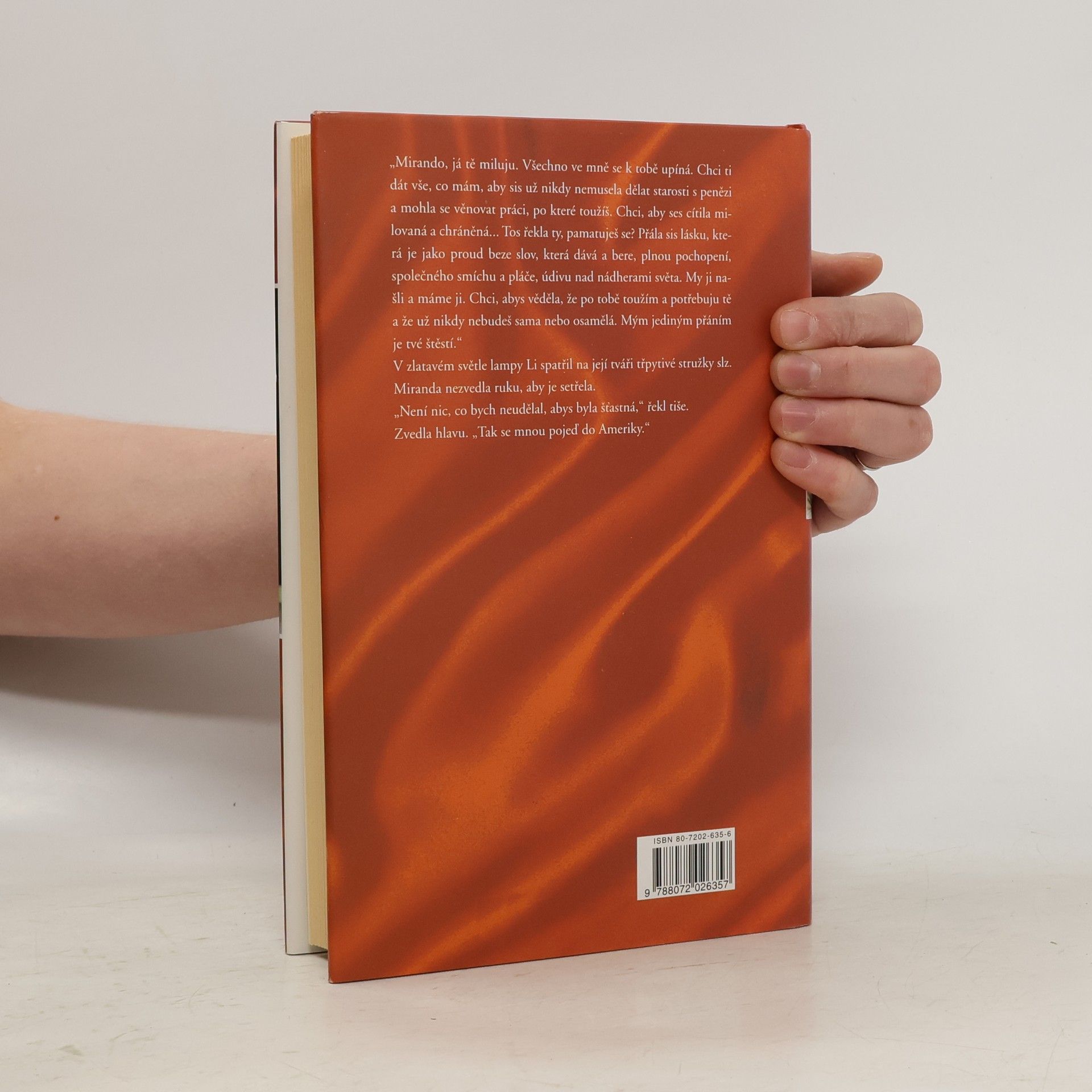 Příběh Američanky, která v exotickém prostředí Číny nachází osudovou lásku. Americká módní návrhářka Miranda přijíždí na osmidenní služební pobyt do Pekingu. Na letišti se náhodně seznamuje se stavebním inženýrem Liem. Miranda si prostřednictvím nových zážitků uvědomuje sama sebe a v okouzlujícím Číňanovi nachází svou osudovou lásku, ve kterou již nedoufala. Na pozadí exotického prostředí, popisu nové ekonomické a politické situace v Číně a střetávání dvou rozdílných kultur se odehrává příběh milostného vzplanutí dvou hrdinů středního věku.