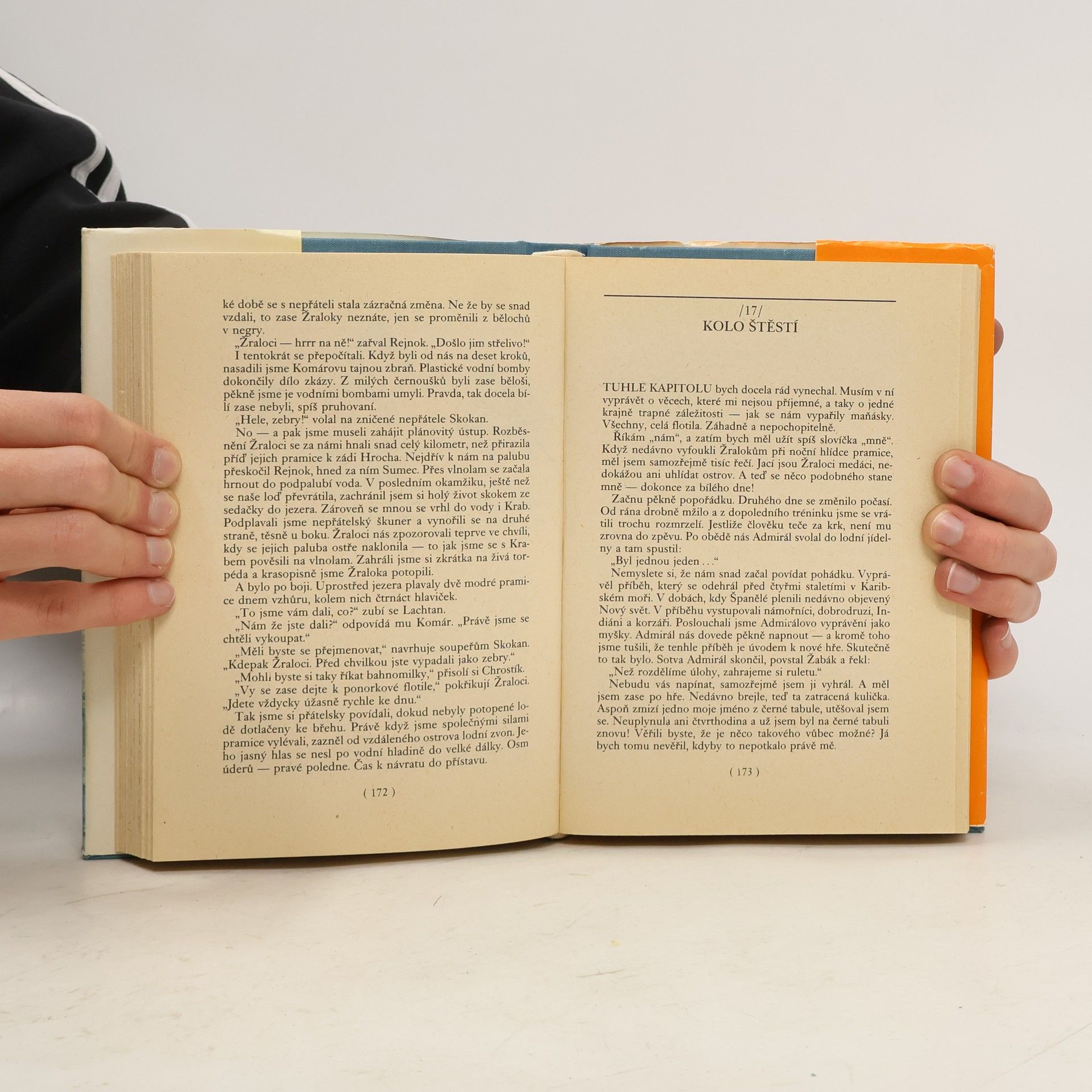 V dobrodružném románu z prostředí vodáckého prázdninového tábora seznamuje s průběhem událostí třináctiletý chlapec, prázdninový nováček, který teprve mezi vodáky nachází místo a zapomíná s nimi na svou tělesnou vadu.