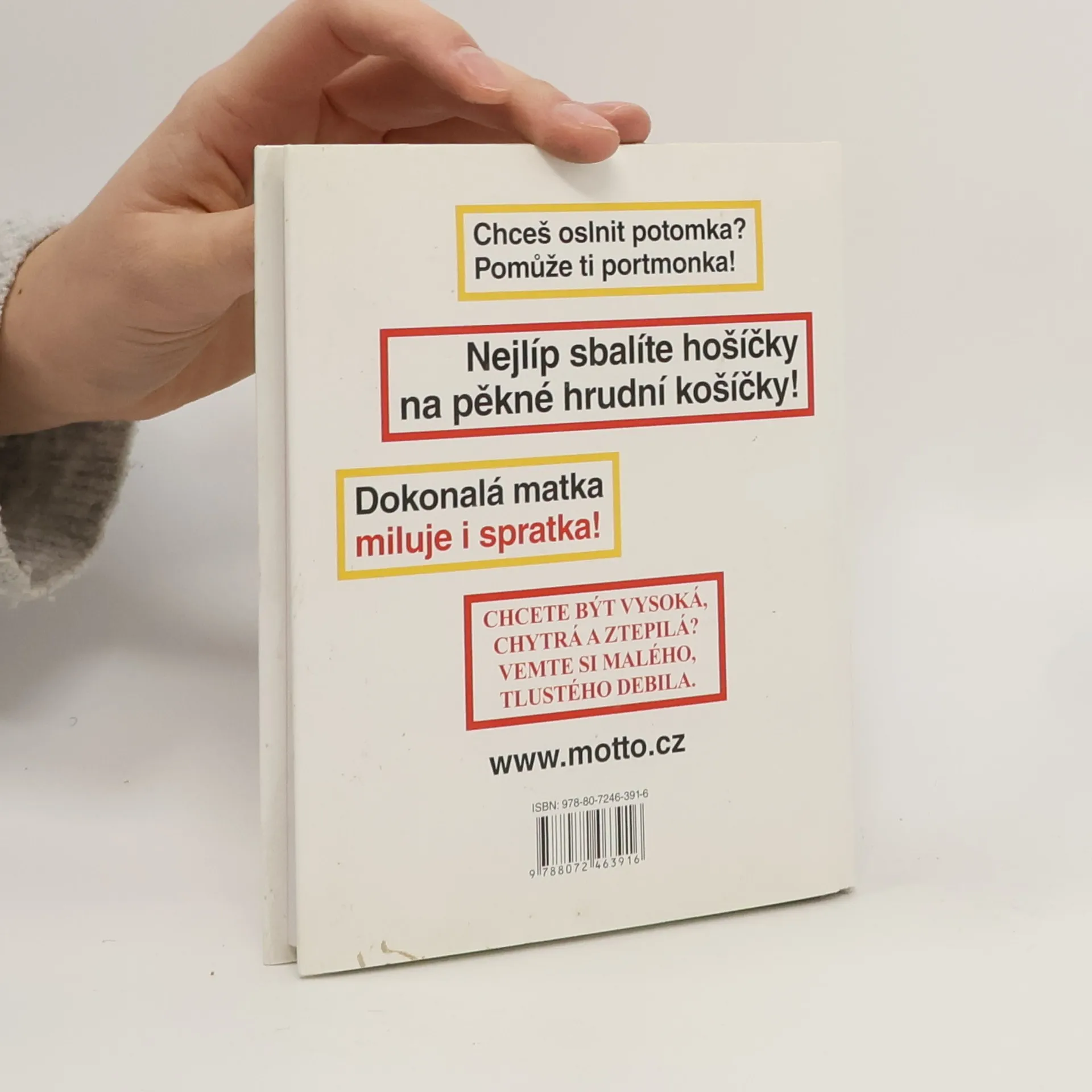 Chceš oslnit potomka? Pomůže ti portmonka! Nejlíp sbalíte hošíčky na pěkné hrudní košíčky! Dokonalá matka miluje i spratka! Chcete být vysoká, chytrá a ztepilá? Vemte si malého, tlustého debila. Váz., 112 stran