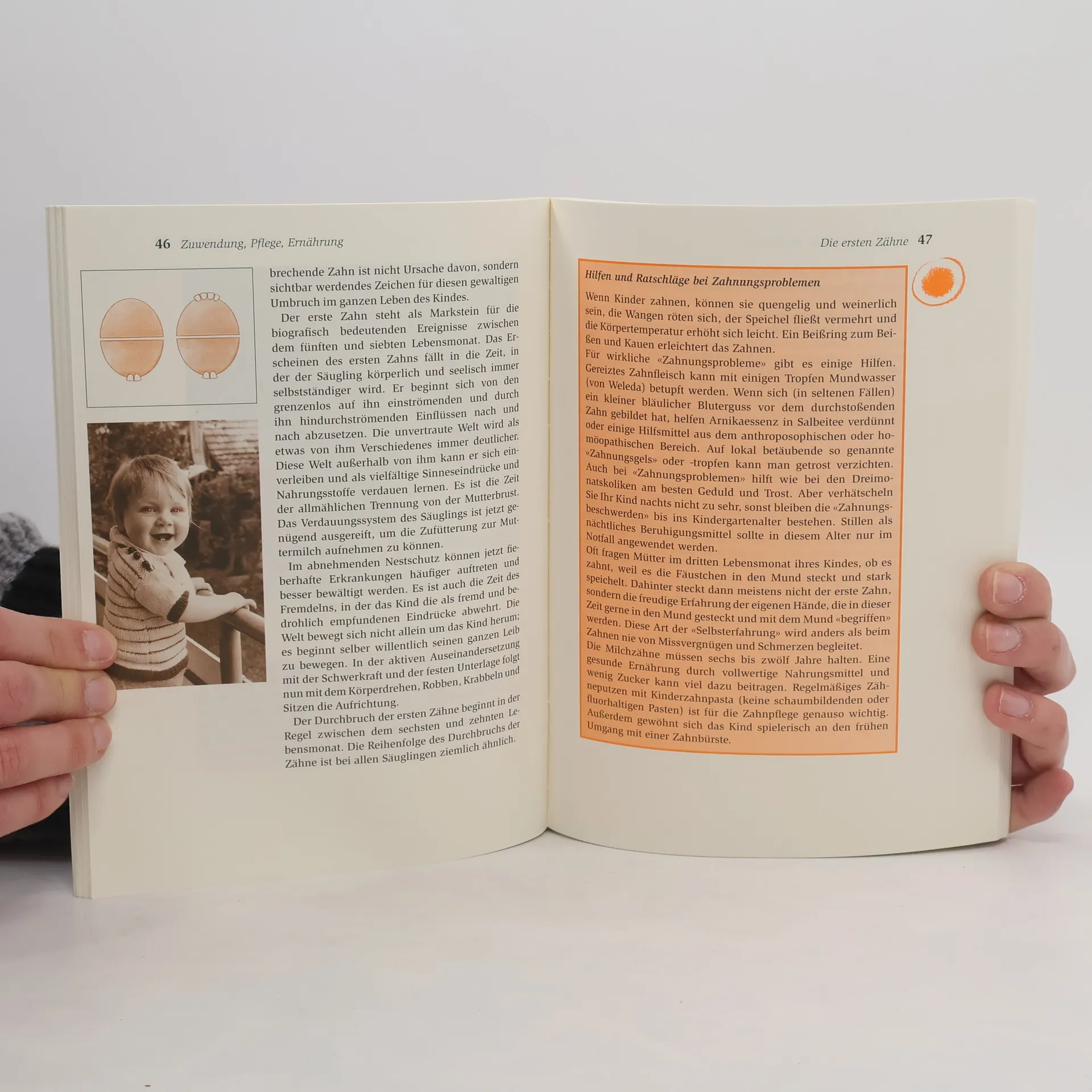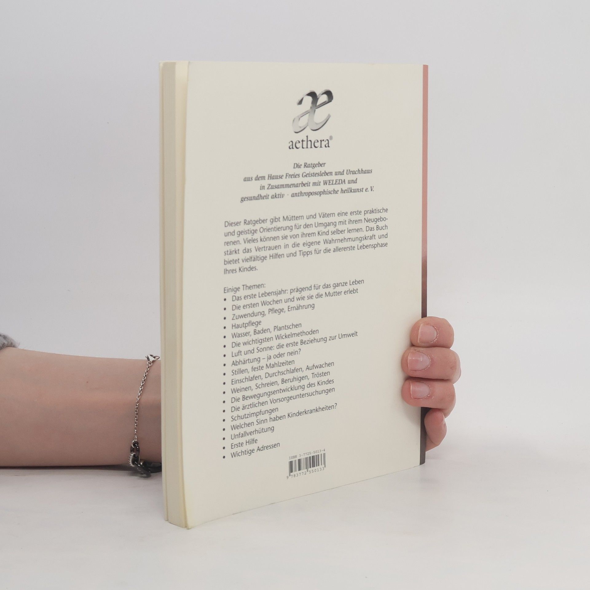 Inhaltsverzeichnis- Das erste Lebensjahr: prägend für das ganze Leben - Die ersten Wochen und wie sie die Mutter erlebt - Zuwendung, Pflege, Ernährung - Hautpflege - Wasser, Baden, Plantschen - Die wichtigsten Wickelmethoden - Luft und Sonne: die erste Beziehung zur Umwelt - Abhärtung – ja oder nein? - Stillen, feste Mahlzeiten - Einschlafen, Durchschlafen, Aufwachen - Weinen, Schreien, Beruhigen, Trösten - Die Bewegungsentwicklung des Kindes - Die ärztlichen Vorsorgeuntersuchungen - Schutzimpfungen - Welchen Sinn haben Kinderkrankheiten? - Unfallverhütung - Erste Hilfe - Wichtige Adressen