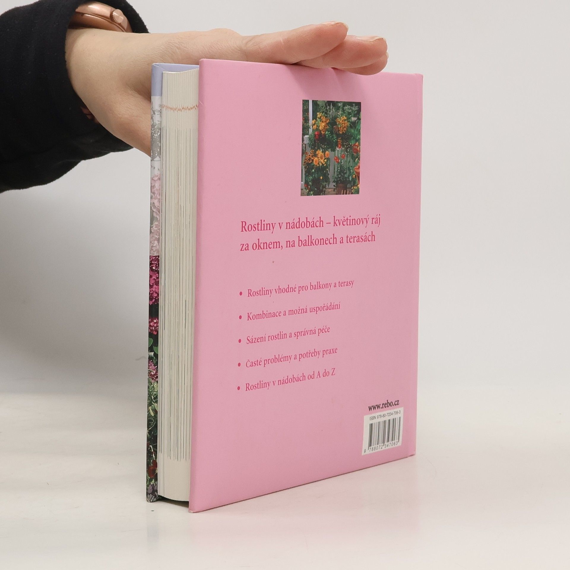 Rostliny v nádobách - květinový ráj za oknem, na balkonech a terasách. Rostliny vhodné pro balkony a terasy. Kombinace a možná uspořádání. Sázení rostlin a péče. Časté problémy a potřeby praxe. Rostliny v nádobách od A do Z.