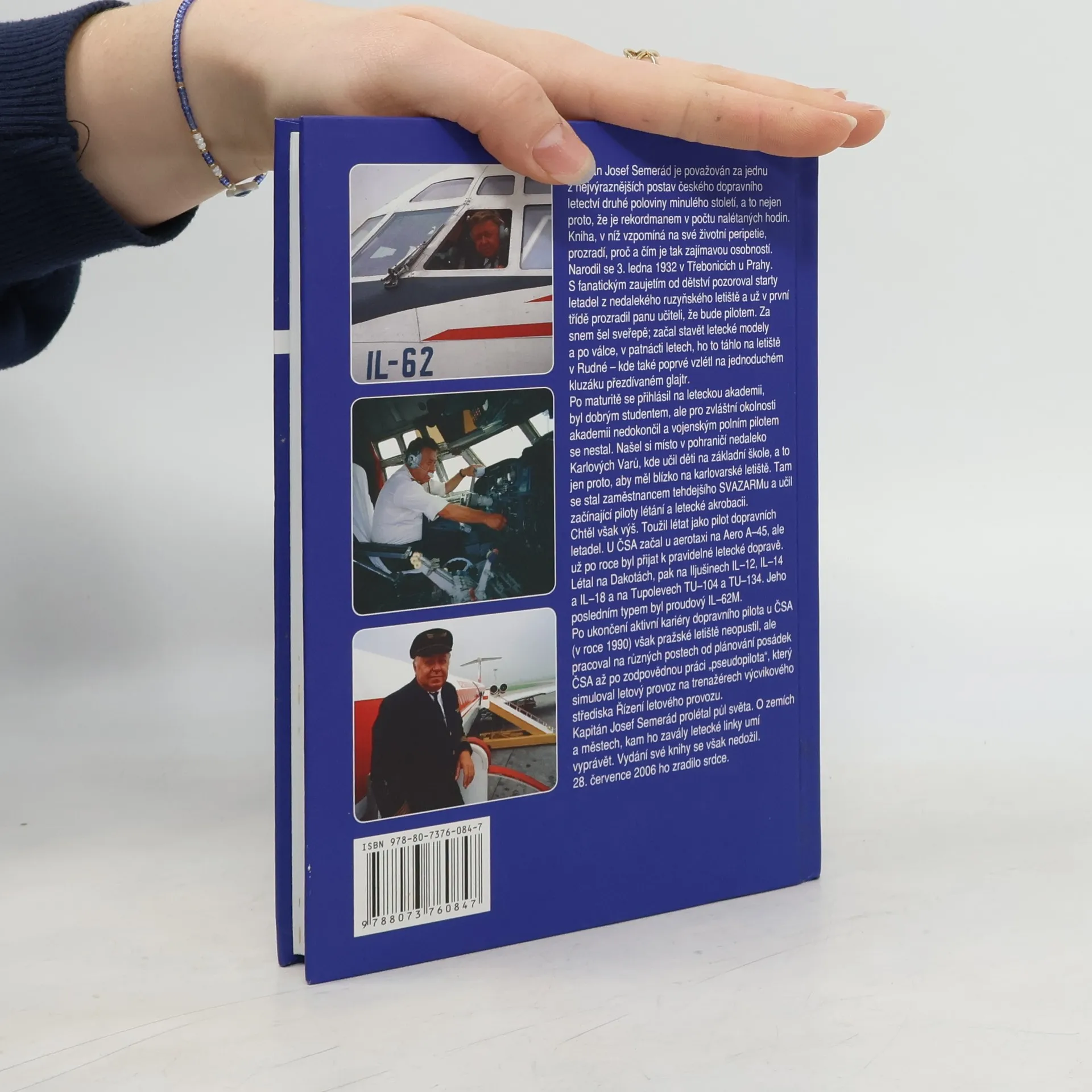 Vzpomínky pilota Čs. aerolinií zaznamenal Jan Jelínek Kapitán Josef Semerád je považován za jednu nejvýraznějších postav českého dopravního letectví druhé poloviny minulého století, a to nejen proto, že je rekordmanem v počtu nalétaných hodin. Kniha, v níž vzpomíná na své životní peripetie, prozradí, proč a čím je tak zajímavou osobností. Kapitán Josef Semerád prolétal půl světa. A o zemích a městech, kam ho zavály letecké linky, umí zajímavě vyprávět, přesvědčíte se o tom.