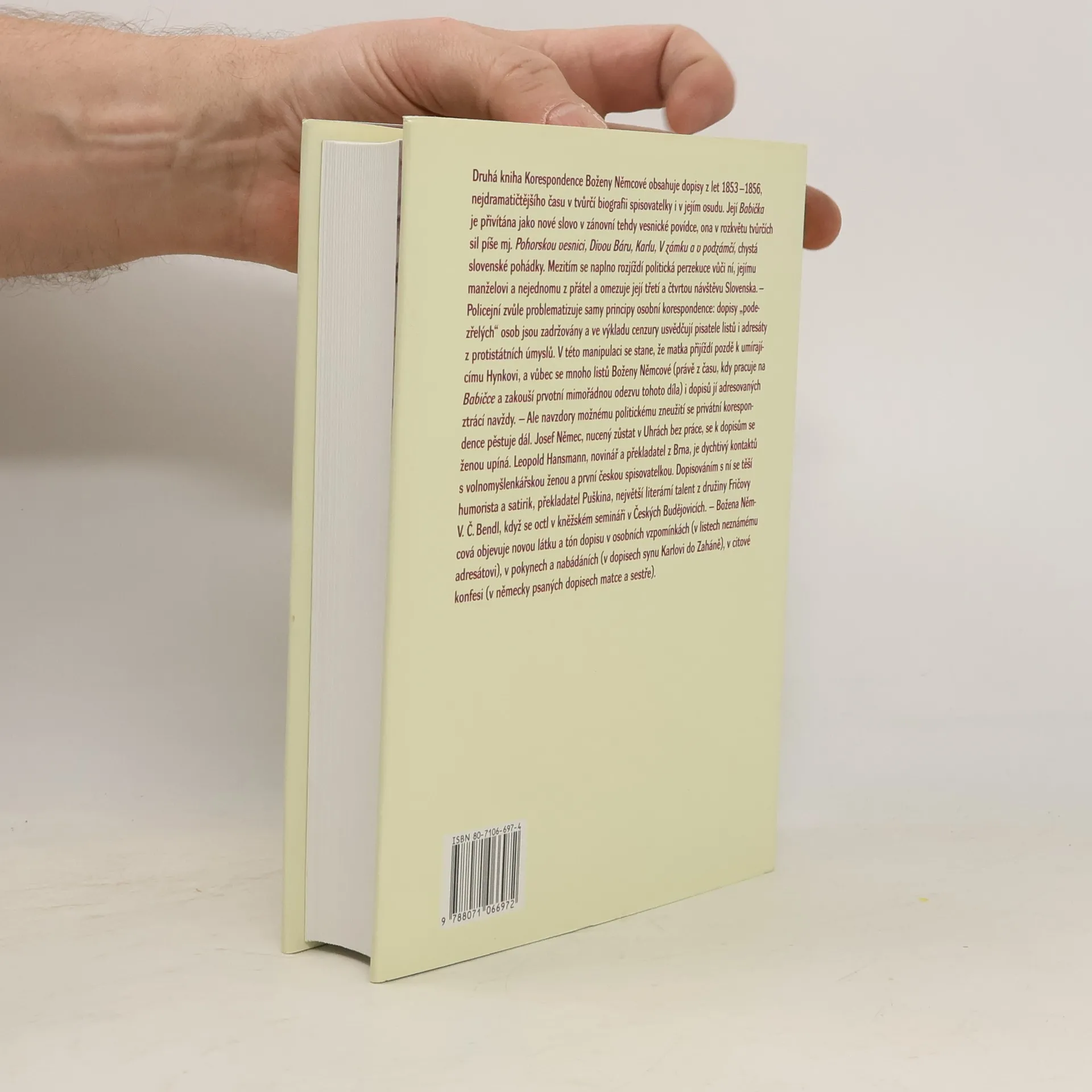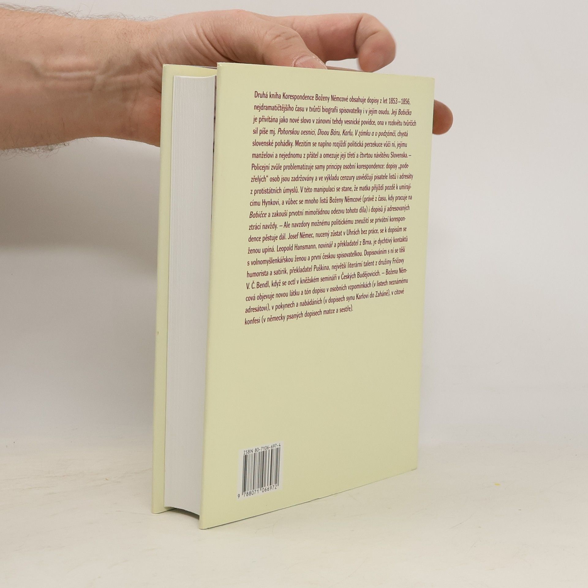 Druhý svazek korespondence Boženy Němcové obsahuje dopisy z let 1853 až 1856, ze spisovatelčiny nejproduktivnější doby – vydala Babičku, Pohorskou vesnici, Divou Báru, Čtyry doby, V zámku a v podzámčí –, z doby stupňované politické perzekuce vůči ní, jejím literárním přátelům i manželovi: z třetí cesty na Slovensko spěchá Božena Němcová do Prahy k umírajícímu synovi, zatímco Josef Němec musí zůstat v Uhrách; již jako autorka Babičky Božena Němcová podniká čtvrtou cestu na Slovensko, je však obviněna ze šíření protirakouského panslavismu...