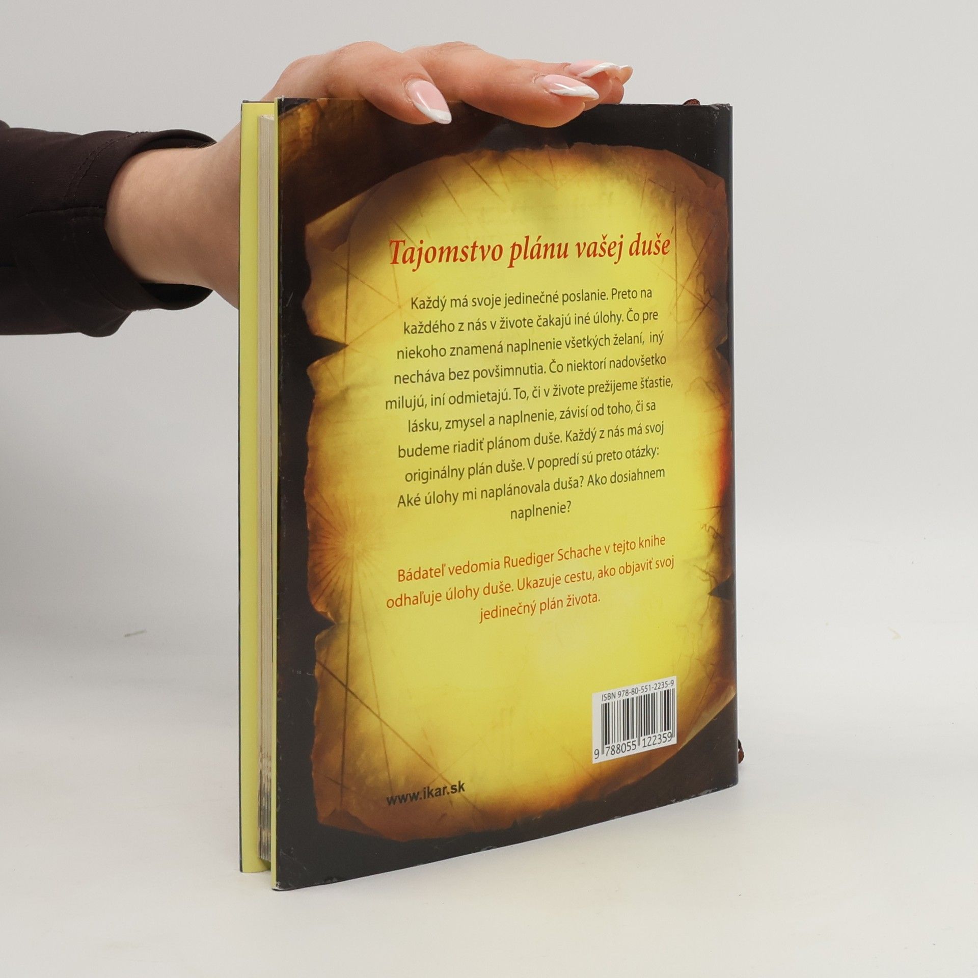Čo hľadá vaša duša? Kam vás vedie život? Nič z toho, čo prežívame, sa nedeje náhodou. Ruediger Schache vo svojej novej knihe hľadá odpovede na kľúčové otázky: Čo je zmyslom života? Ako vzniká pocit šťastia? Môžem byť šťastný? Každý človek má svoj jedinečný plán duše a predurčenú cestu, ako v živote dosiahnuť naplnenie. Ale aby sme mohli napredovať po tejto ceste, musíme rozumieť znameniam. Treba pochopiť, prečo život prebieha tak a nie inak, prečo a aké signály nám posiela duša a čo vlastne hľadá. Aký význam má rodina, telo, nadanie a schopnosti. Čo nám hovoria isté udalosti. Na ceste za naplnením želaní a túžob môžeme pochopiť reč života a rozpoznať poriadok všetkých vecí a vzťahov. Naučíme sa pýtať: Čo nás učia vzťahy? Aký zmysel majú niektoré stretnutia? Čo treba dať do poriadku? Čo treba prežiť? A urobiť? Čím viac o tom budeme vedieť, tým lepšie sa môžeme rozhodovať. Kniha Ruedigera Schacheho nám pomôže pochopiť plán duše, aby sme mohli viesť naplnený, šťastný a zmysluplný život."
