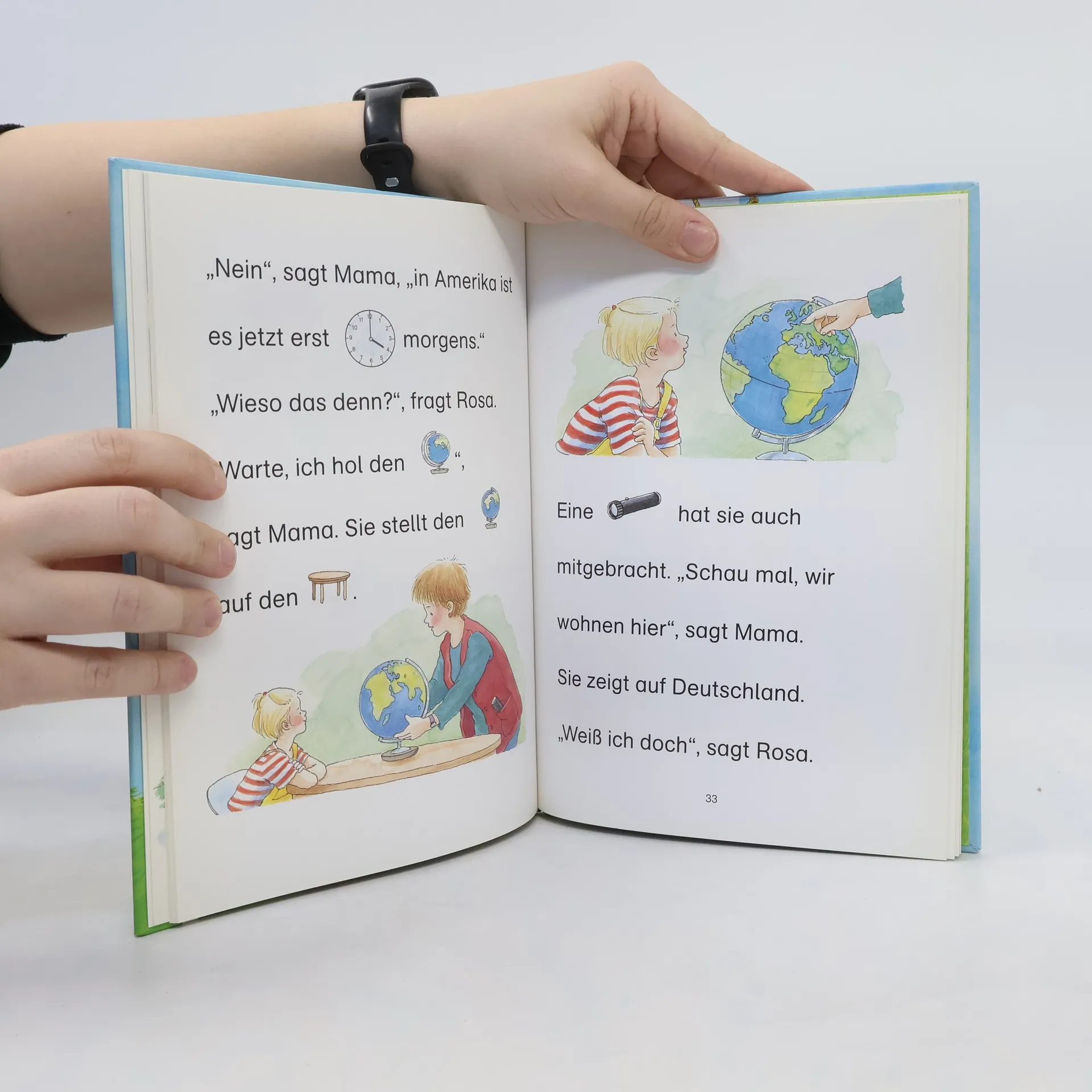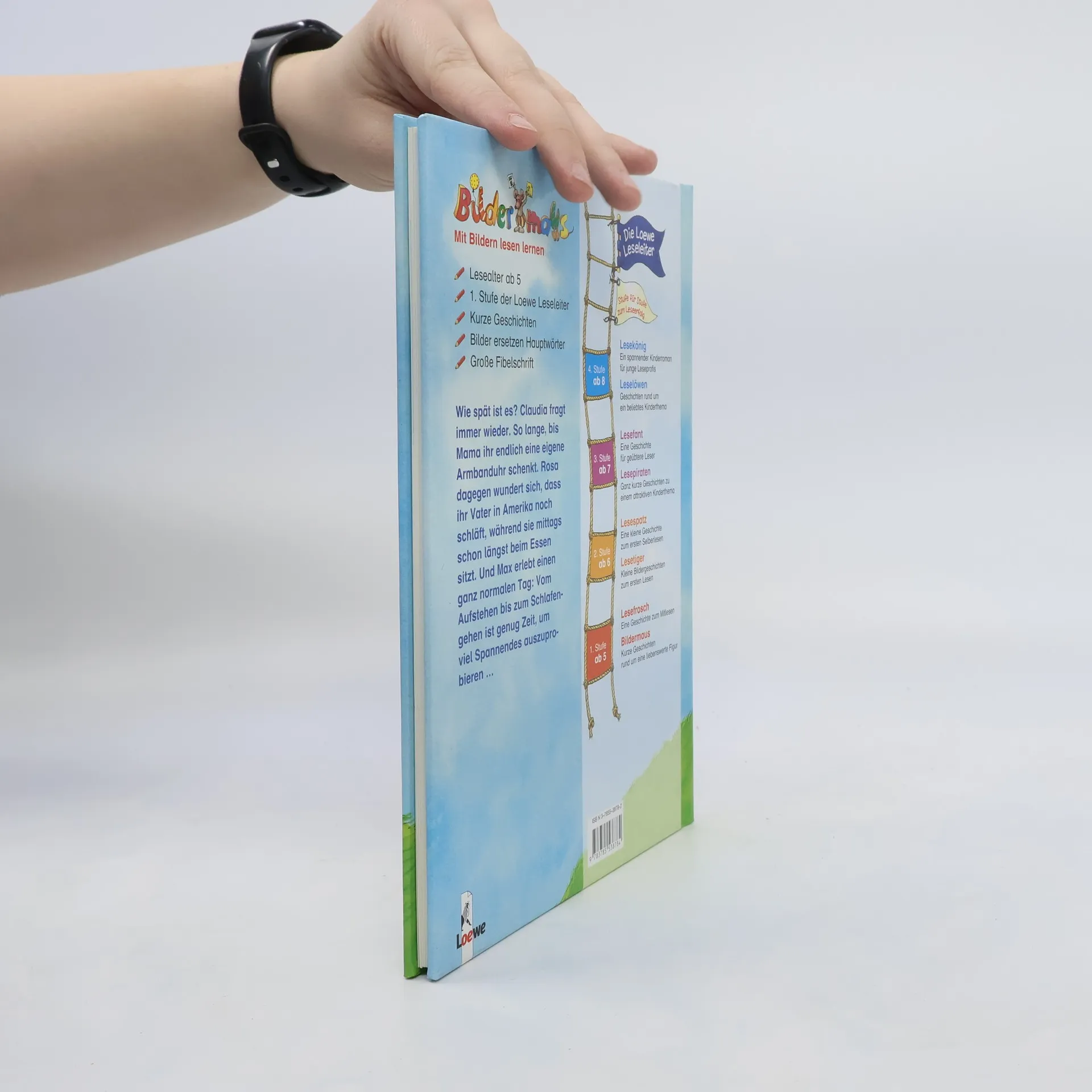 Lesealter ab 5 1. Stufe der Loewe-Leseleiter Kurze Geschichten Bilder ersetzen Hauptwörter Große Fibelschrift Wie spät ist es? Claudia fragt immer wieder. So lange, bis Mama ihr endlich eine eigene Armbanduhr schenkt. Rosa dagegen wundert sich, dass ihr Vater in Amerika mittags noch schläft, während sie schon längst beim Essen sitzt. Und Max erlebt einen ganz normalen Tag: Vom Aufstehen bis zum Schlafengehen ist genug Zeit, um viel Spannendes zu erleben.