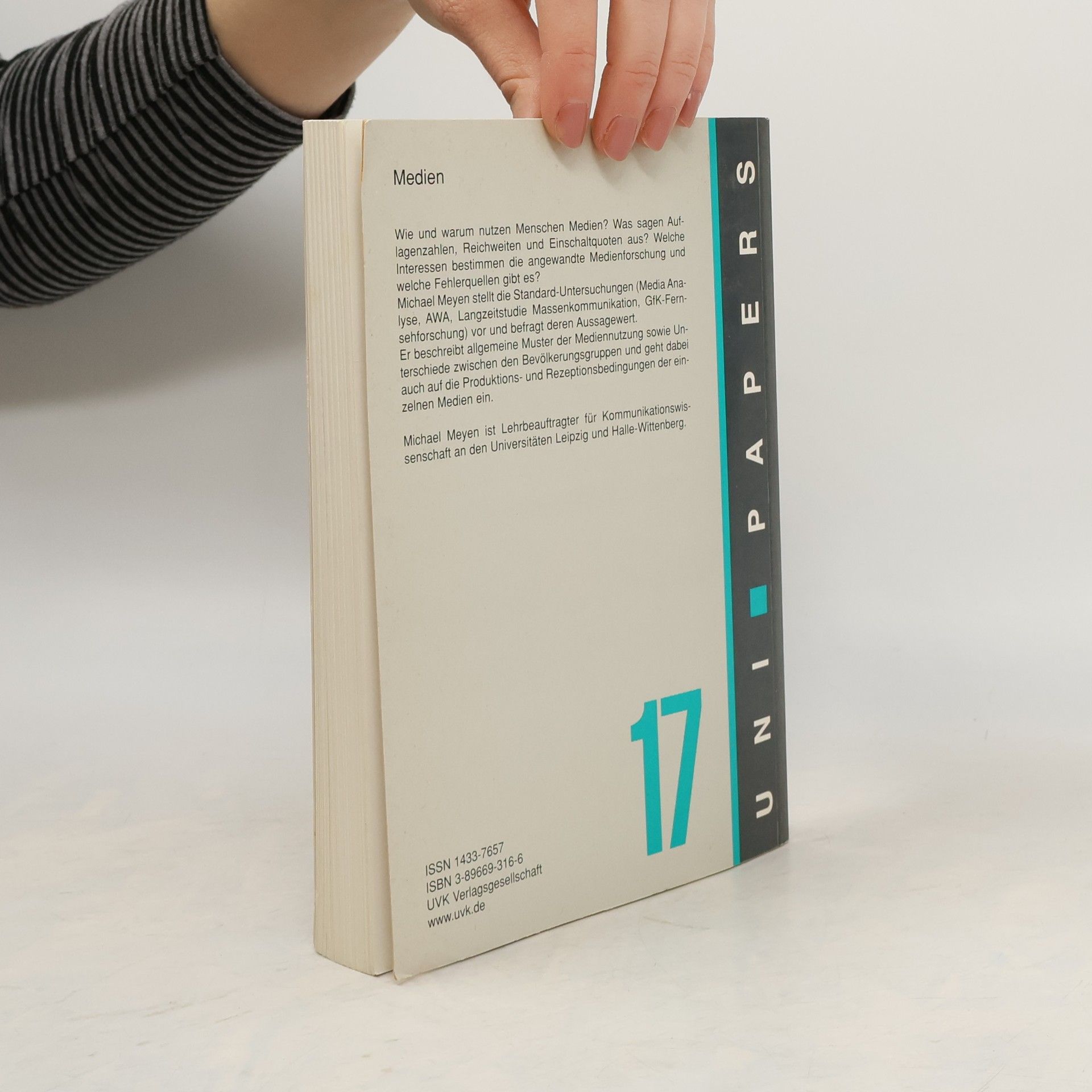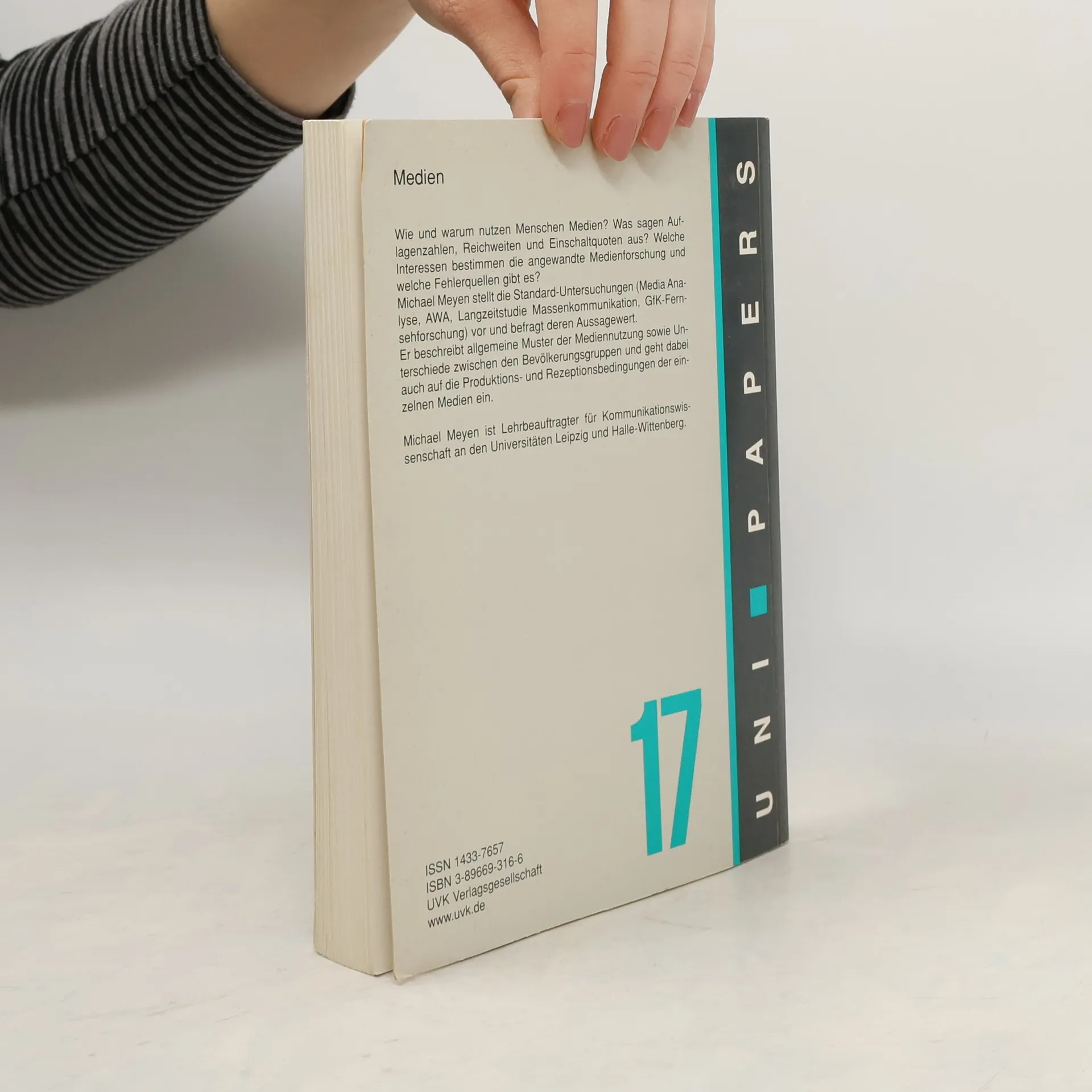 Was veranlasst Menschen dazu, bereits vor dem Aufstehen das Radio einzuschalten, nach dem Frühstück oder in der Straßenbahn die Tageszeitung zu lesen und abends stundenlang fernzusehen? Die Nutzungsforschung untersucht zunächst den Kontakt zu Medien: Wer kommt wann und wie lange mit welchen Angeboten in Berührung? Michael Meyen präsentiert relevante Zahlen, legt jedoch den Fokus auf Ansätze, die verschiedene Nutzungsweisen verstehen und einordnen. Die Wünsche der Nutzer werden von den Produktions- und Rezeptionsbedingungen der Medien beeinflusst. Daher werden Versorgungsdichte, Nutzungsdauer und Reichweite von Presse, Rundfunk, Film und Internet anhand von Daten diskutiert. Meyen erklärt die Methoden der Mediaforschung: Was sagen Einschaltquoten aus, und welche Informationen fehlen? Welche Interessen bestimmen die Forschung und wo liegen Fehlerquellen? Forschungsergebnisse zur Medienbewertung, insbesondere zur Glaubwürdigkeit, zeigen, dass das Urteil der Mediennutzer über die Nützlichkeit oder Schädlichkeit von Inhalten von den Funktionen abhängt, die die Angebote erfüllen. Darüber hinaus thematisiert der Autor menschliche Bedürfnisse, die Medien befriedigen, gesellschaftliche Wurzeln dieser Bedürfnisse, Unterschiede zwischen Bevölkerungsgruppen und die spezifischen Leistungen, die das Publikum von jedem Medium erwartet. Meyen stellt theoretische Ansätze wie den Uses-and-Gratifications-Approach und Cultural Studies vor, um die