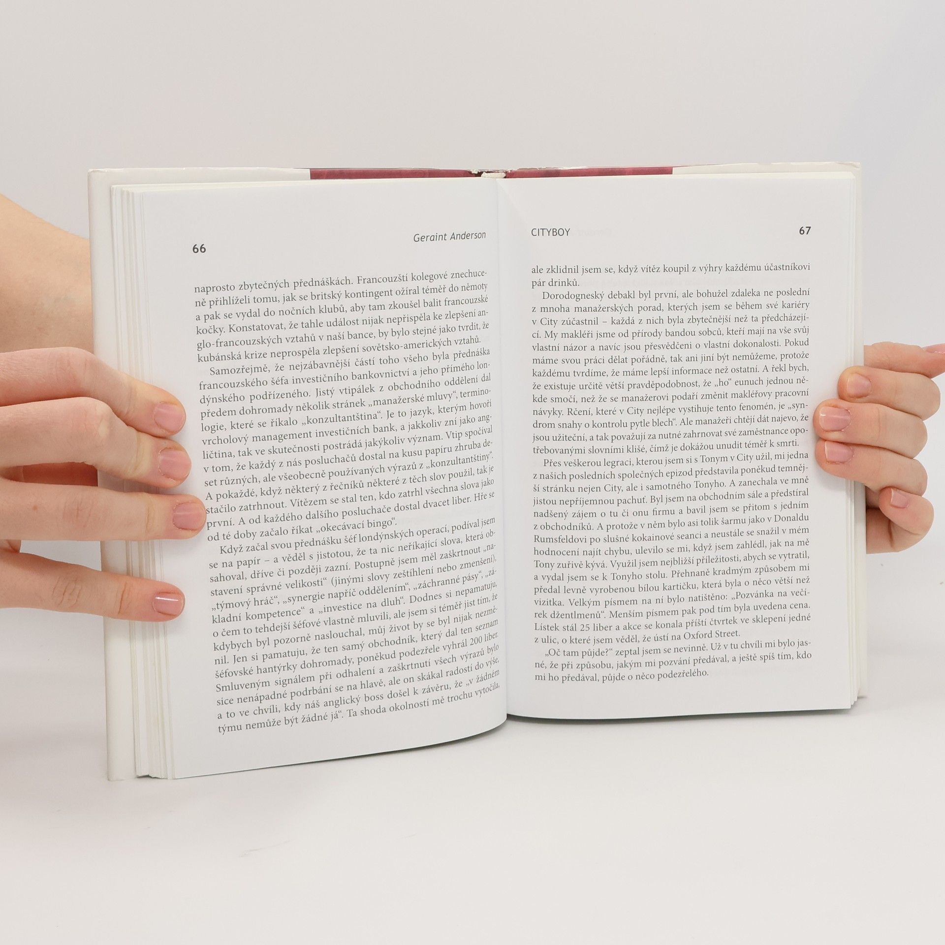 Román Cityboy anglického spisovatele Gerainta Andersona (nar. 1972) je fascinujícím a unikátním svědectvím o každodenním životě v nepřetržitě tepajícím srdci finančního světa, poháněném adrenalinem obrovských peněz, intrik, sexu, drog a alkoholu. Srdce, které málem zastavil infarkt nedávné finančí krize. V Andresenově knize najdete krom jiného odpovědi na otázky, kdo za ní stál a kdo na ní nejvíc vydělal. A také na to, jak neuvěřitelně rychle zbohatnout, pokud jste ochotni, stejně jako Steve Jones, prodat svou duši ďáblu. Steve Jones se stal makléřem v londýnské City téměř omylem. Vydělává v přepočtu kolem 15 miliónů korun ročně (“každý prodáváme svou duši ďáblu a já se rozhodl, že tu svou prodám pořádně draze”), ale daň, kterou za to platí vyčerpávajícím životním stylem ho přivede na hranici nervového zhroucení. Když se rozhodne své výnosné zaměstnání opustit a napsat knihu o nekalých praktikách, kterých byl svědkem, ví že poruší nepsaný kód mlčenlivosti londýnské City a spálí za sebou jednou provždy mosty.