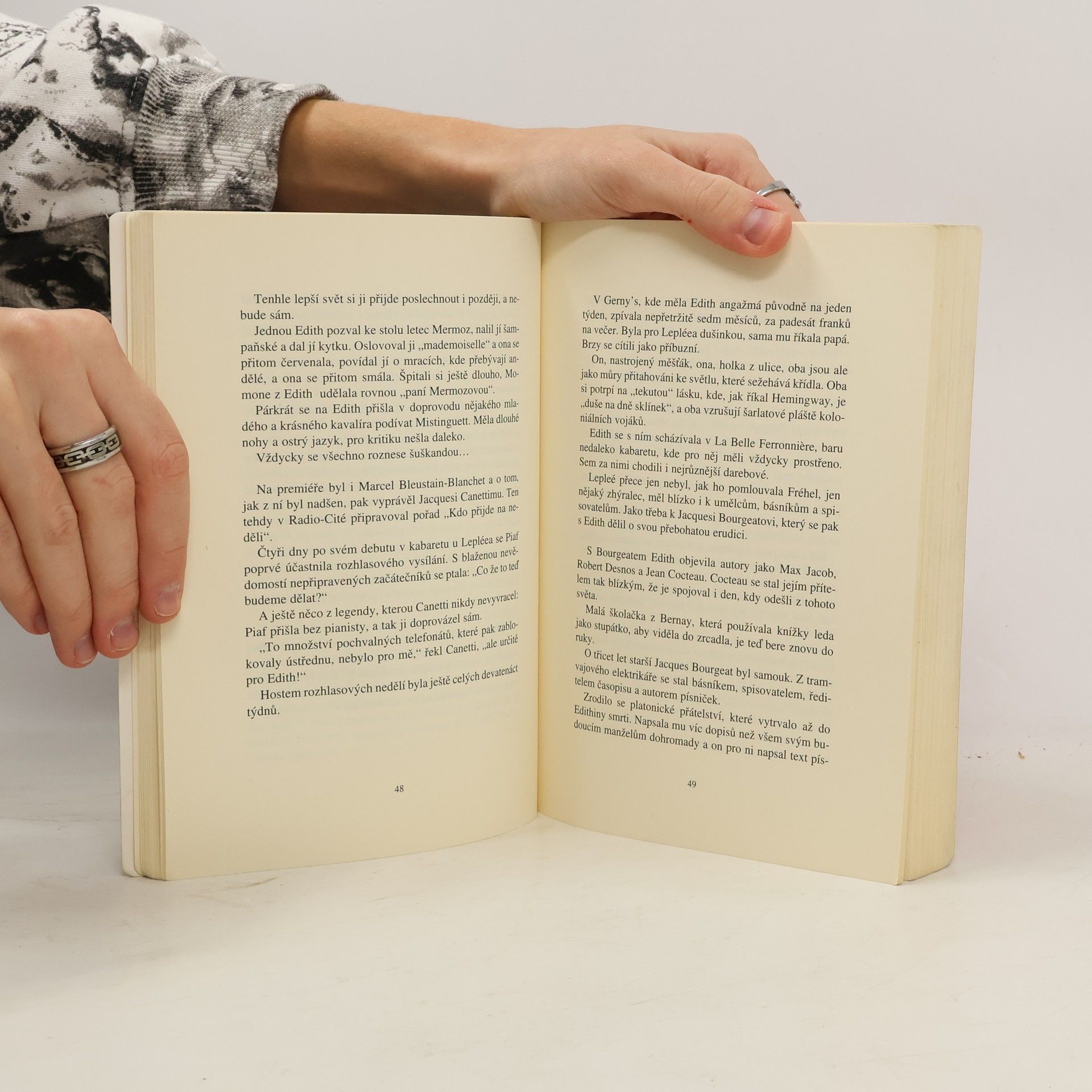 Životní příběh největší francouzské zpěvačky, oslnivý i plný zvratů, je sám o sobě napínavější a více strhující než leckterý román. Chudé dětství bez matky u babiček a pak na ulicích čtvrti Belleville, avantýry na jeden večer s frajírky z baru, noční flámy se sestrou Momonkou, ale také opravdové lásky, smrt dcerky, tragická letecká nehoda, při níž zahyne její milý boxer Marcel Cerdan, alkohol a drogy, vyčerpání, nemoc