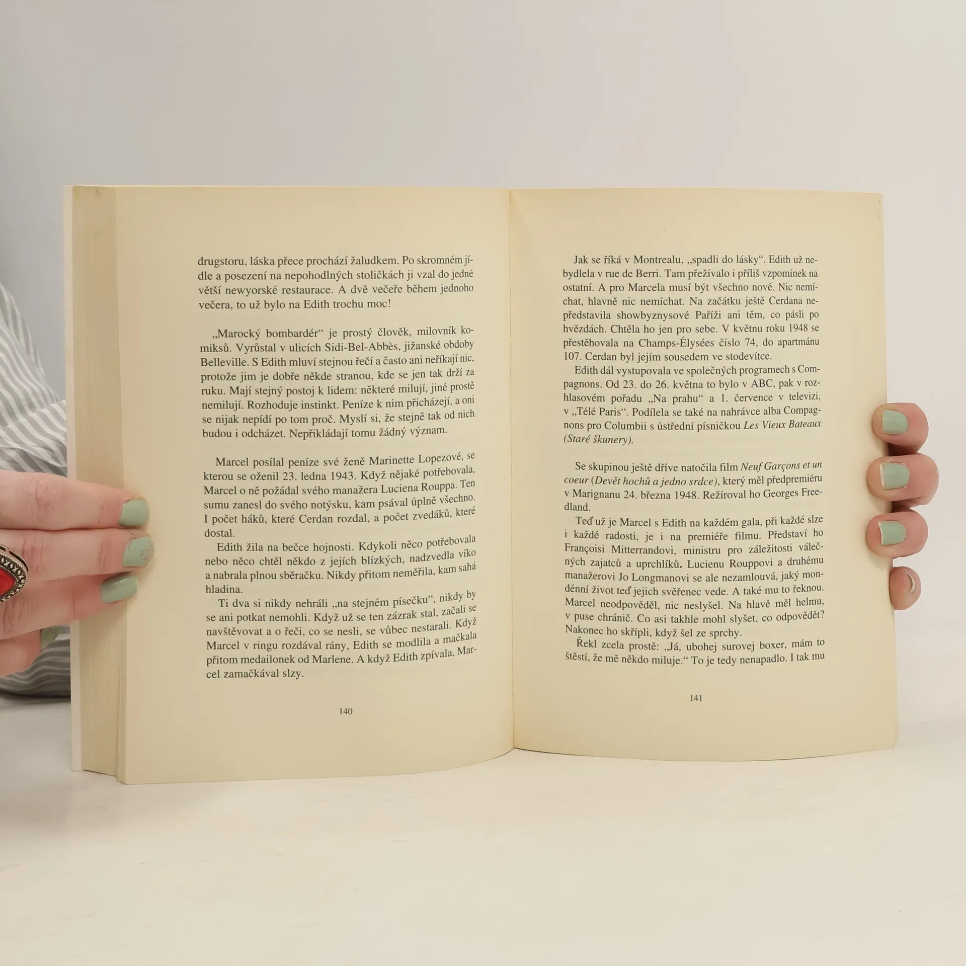 Životní příběh největší francouzské zpěvačky, oslnivý i plný zvratů, je sám o sobě napínavější a více strhující než leckterý román. Chudé dětství bez matky u babiček a pak na ulicích čtvrti Belleville, avantýry na jeden večer s frajírky z baru, noční flámy se sestrou Momonkou, ale také opravdové lásky, smrt dcerky, tragická letecká nehoda, při níž zahyne její milý boxer Marcel Cerdan, alkohol a drogy, vyčerpání, nemoc