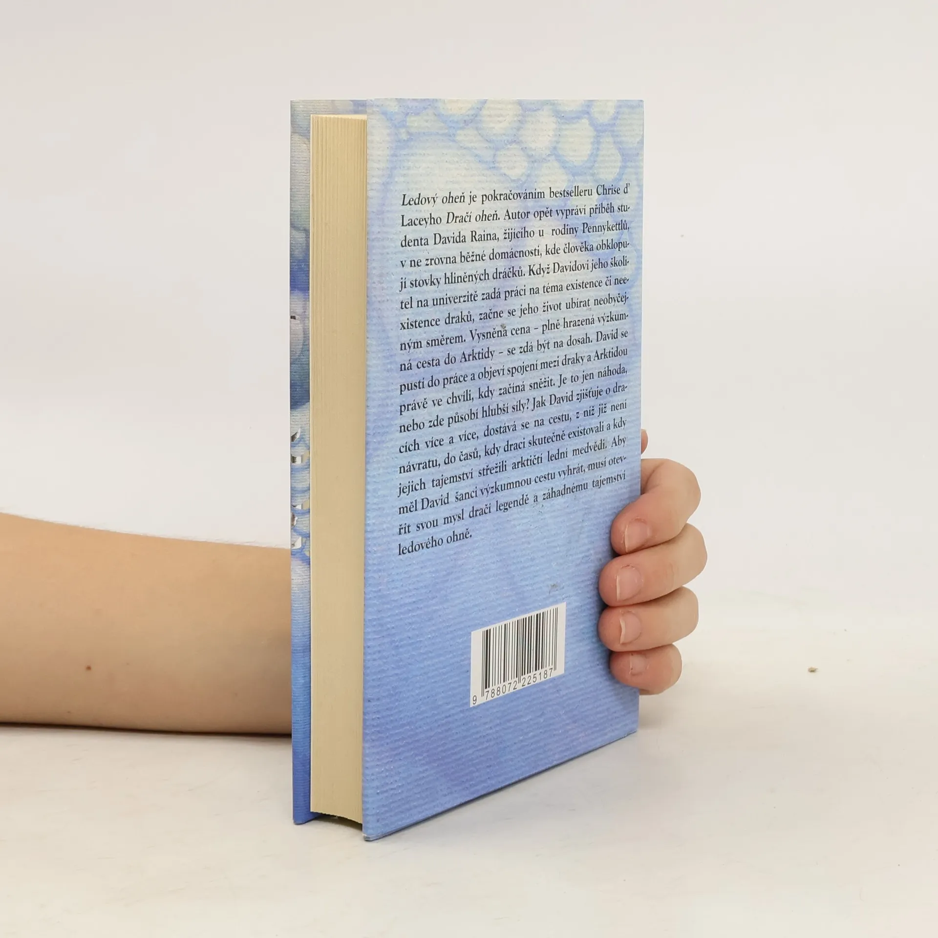 Ledový oheň je pokračováním bestselleru Chrise d’ Laceyho Dračí oheň. Autor opět vypráví příběh studenta Davida Raina, žijícího u rodiny Pennykettlů, v ne zrovna běžné domácnosti, kde člověka obklopují stovky hliněných draků. Když Davidovi jeho školitel na univerzitě zadá práci na téma existence či neexistence draků, začne se jeho život ubírat neobyčejným směrem. Vysněná cena – plně hrazená výzkumná cesta do Arktidy – se zdá být na dosah. David se pustí do práce a objeví spojení mezi draky a Arktidou právě ve chvíli, kdy začíná sněžit. Je to jen náhoda, nebo zde působí hlubší síly? Jak David zjišťuje o dracích více a více, dostává se na cestu, z níž již není návratu, do časů, kdy draci skutečně existovali a kdy jejich tajemství střežili arktičtí lední medvědi. Aby měl David šanci výzkumnou cestu vyhrát, musí otevřít svou mysl dračí legendě a záhadnému tajemství ledového ohně.