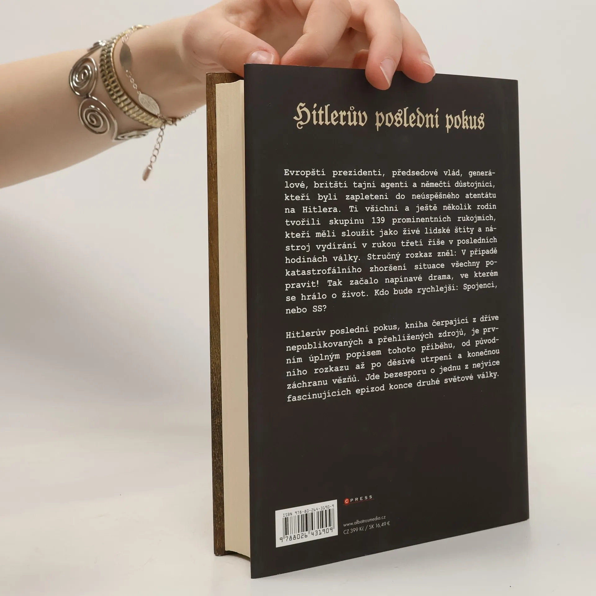 Fascinující příběh skupiny rukojmí, kteří čekají na záchranu v posledních hodinách druhé světové války. Evropští prezidenti, předsedové vlád, generálové, britští tajní agenti a němečtí důstojníci, kteří byli zapleteni do neúspěšného atentátu na Hitlera. Ti všichni a ještě několik rodin tvořili skupinu 139 prominentních rukojmí, kteří měli sloužit jako živé lidské štíty a nástroj vydírání v rukou třetí říše v posledních hodinách války. Stručný rozkaz zněl: V případě katastrofálního zhoršení situace všechny popravit! Tak začalo napínavé drama, ve kterém se hrálo o život. Kdo bude rychlejší, Spojenci nebo SS? Hitlerův poslední pokus, kniha čerpající z dříve nepublikovaných a přehlížených zdrojů, je prvním úplným popisem tohoto příběhu, od původního rozkazu až po děsivé utrpení a konečnou záchranu vězňů. Jde bezesporu o jednu z nejvíce fascinujících epizod konce druhé světové války.