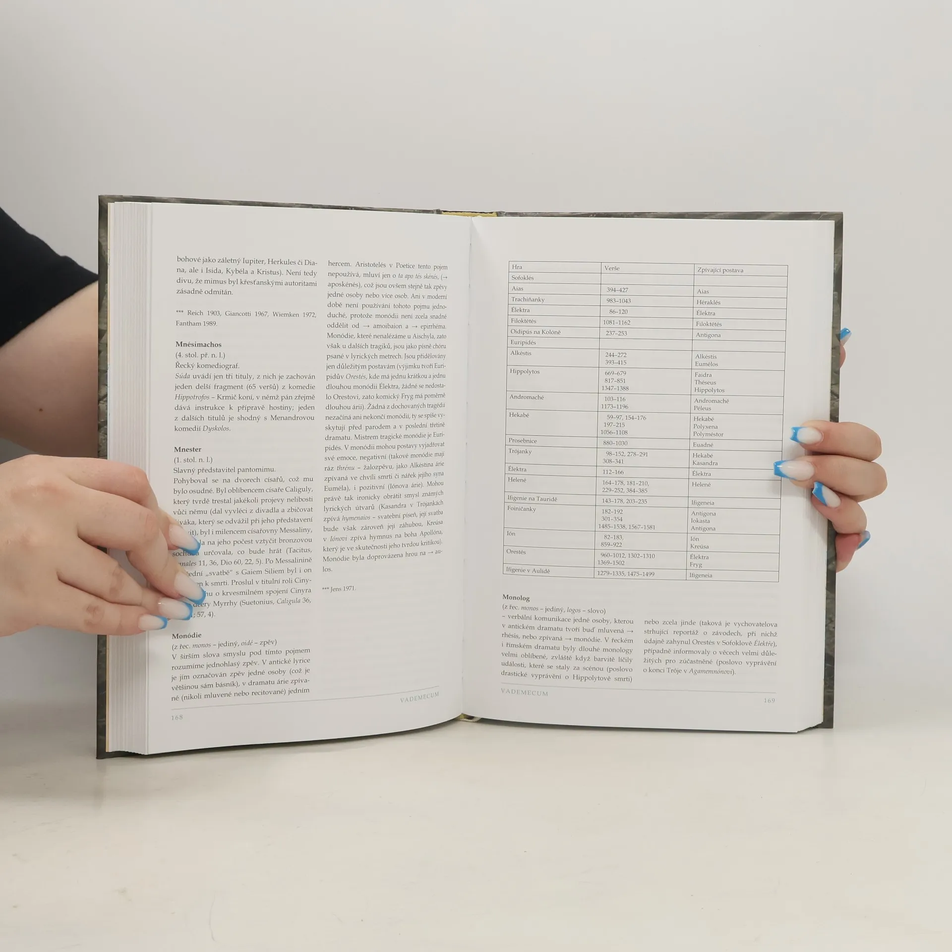 Slovníkově pojatá encyklopedie antického divadla, sahající do hloubky vhodné pro odborníky a zároveň promlouvající jazykem vhodným i pro laické zájemce. Obsahuje přehled antických divadel, výklad specifických pojmů, do nichž se antické divadlo halí, i vyprávění o někdejších dramaticích a jejich dílech.