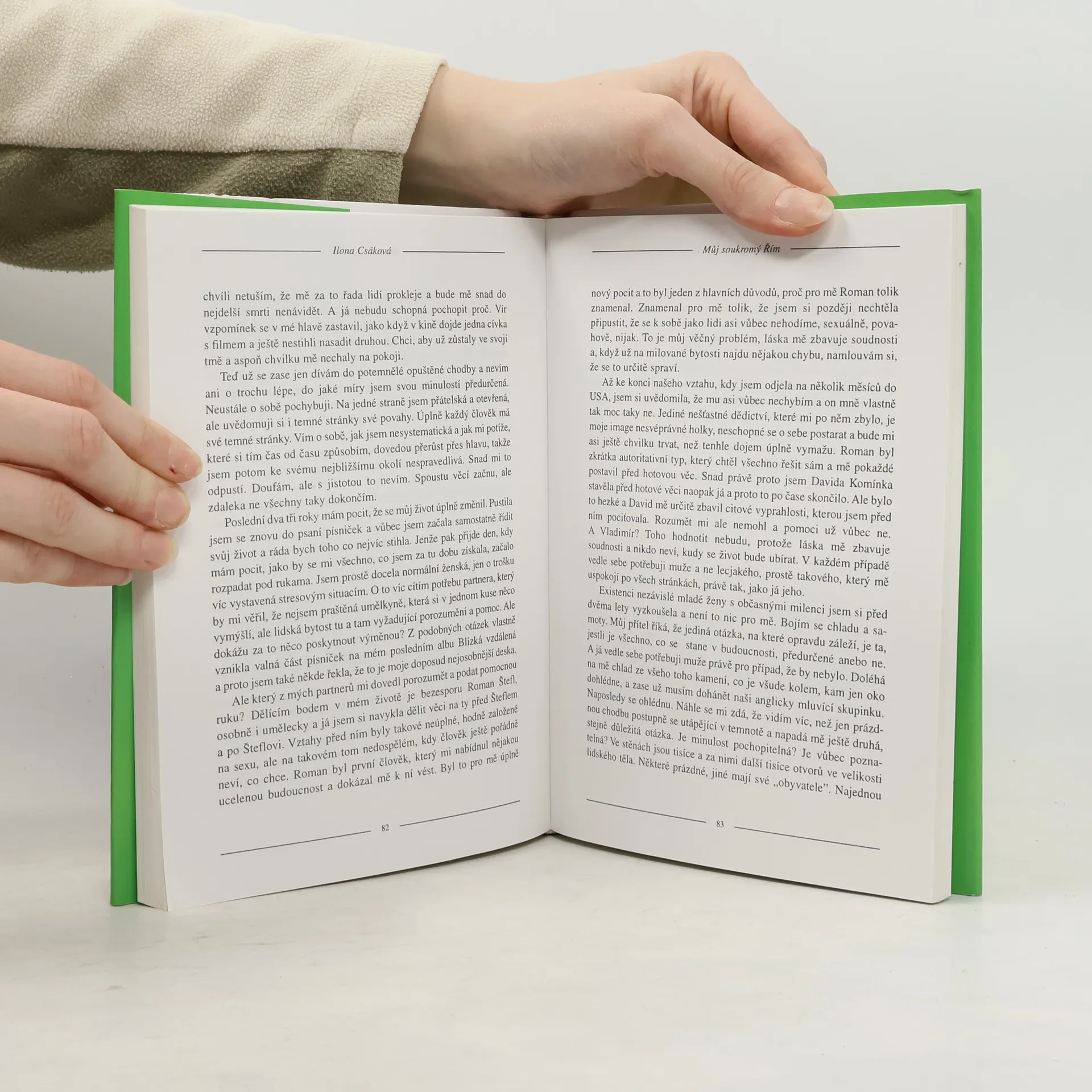 Kniha Můj soukromý Řím je zpovědí zpěvačky Ilony Csákové. Zpěvačka vzpomíná na své začátky v kapele Laura a její tygři. Před očima jí vystupují obrazy jejích prvních lásek i zklamání. Prožívá start sólové kariéry - přiznává vliv svých partnerů na pracovní vytížení. Přesto nezapomíná na svůj původ, rodinu, místa spojená se svým dětstvím. Děj monografie je zarámovaný kulisami italské metropole Řím. Města, do kterého se zpěvačka ráda vrací.... celý text