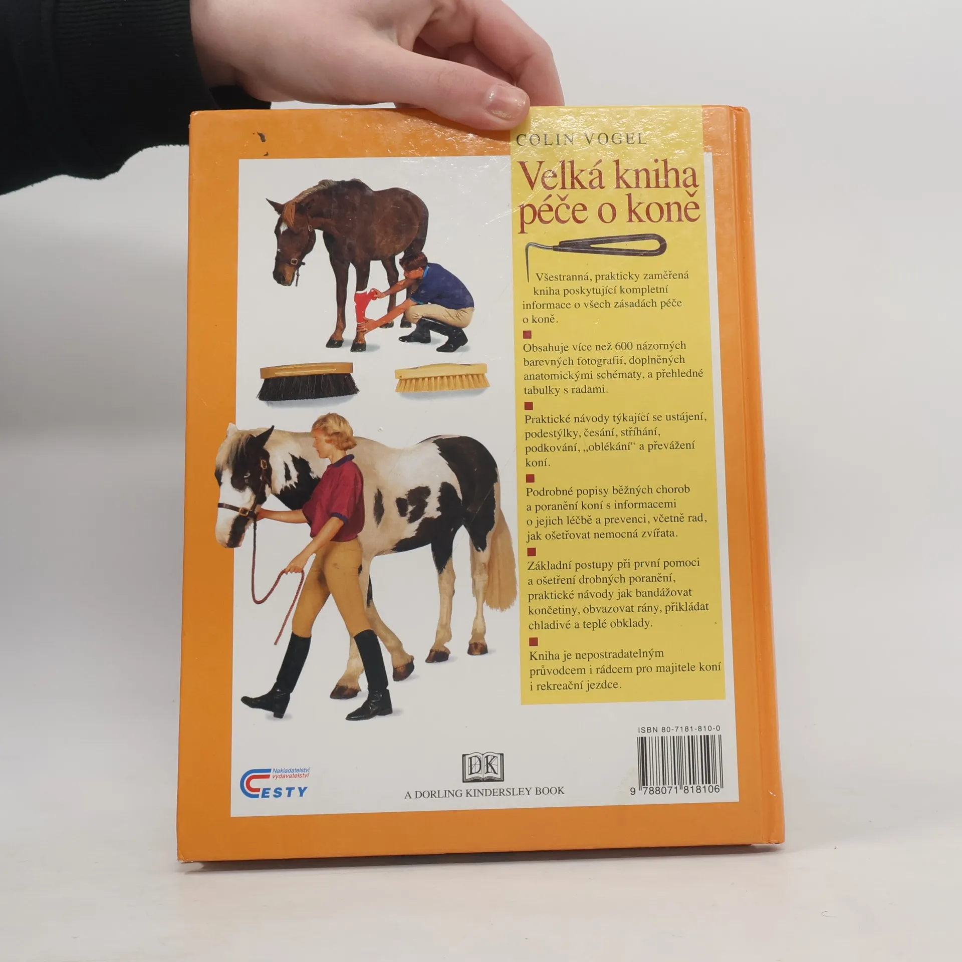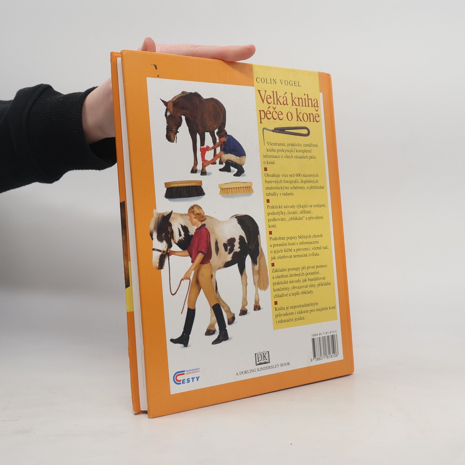 Všestranná, prakticky zaměřená kniha poskytující kompletní informace o všech zásadách péče o koně. Obsahuje více než 600 názorných barevných fotografií, doplněných anatomickými schématy, a přehledné tabulky s radami. Praktické návody týkající se ustájení, podestýlky, česání, stříhání, podkování,"oblékání" a převážení koní. Podrobné popisy běžných chorob a poranění koní s informacemi o jejich léčbě a prevenci, včetně rad, jak ošetřovat nemocná zvířata. Základní postupy při první pomoci a ošetření drobných poranění, praktické návody jak bandážovat končetiny, obvazovat rány, přikládat chladivé a teplé obklady. Kniha je nepostradatelným průvodcem a rádcem pro majitele koní i rekreační jezdce