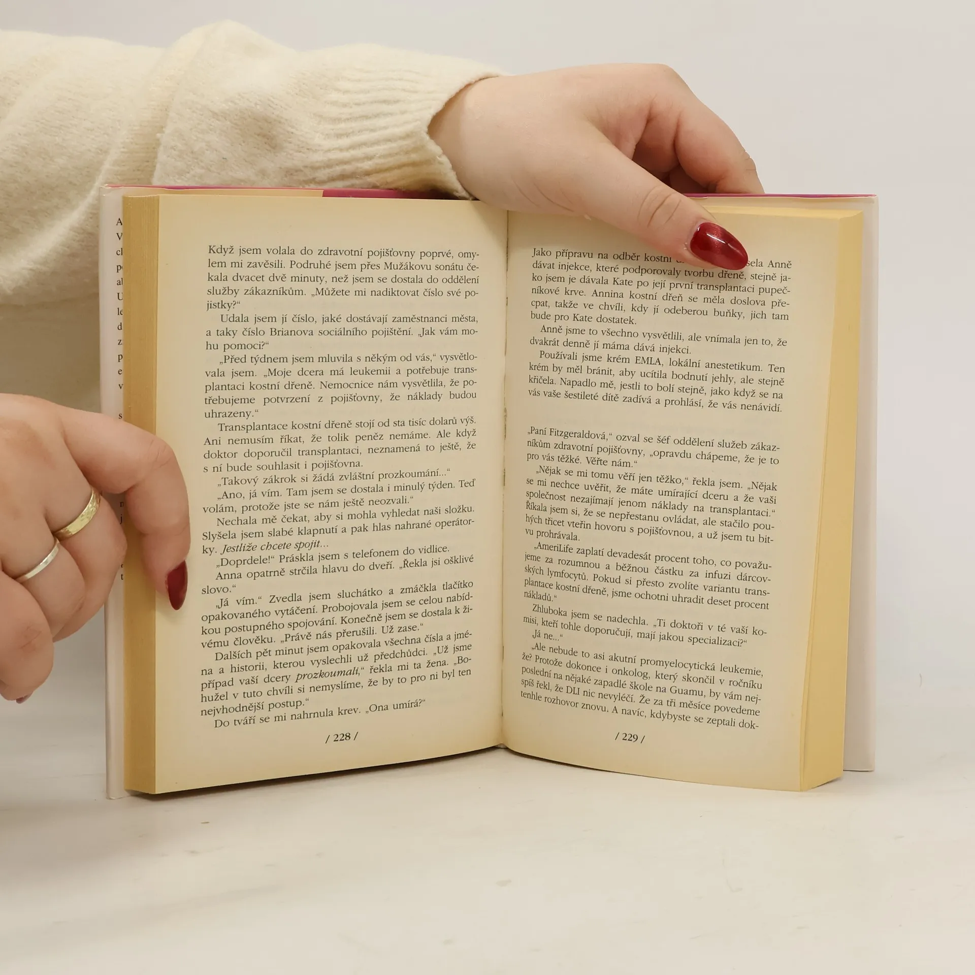 Anna není nemocná, ale jako by byla. Ve třinácti letech má za sebou nespočet chirurgických zákroků, nemocničních pobytů, transfuzí a injekcí – jen proto, aby její starší sestra Kate mohla žít. U Kate totiž ve dvou letech propukla leukémie a její rodiče se rozhodli pro další dítě, aby pro nemocnou dceru získali dárce kostní dřeně. Anna byla počata ve zkumavce a lékaři vybrali embryo, které bylo pro Kate jako dárce geneticky vhodné. Jenže v rodině, kde se všichni soustředí na vážně nemocné dítě, si Anna připadá jenom jako dárce. Nemilovaná, nadbytečná, pouhý stroj, který udržuje sestru při životě. A tak se jednoho dne vzepře způsobem, který šokuje všechny okolo, ale i ji samotnou. Rozhodne se, že už nebude jenom výrobcem buněk, že má nárok být vnímána jako lidská bytost. A když to nepůjde jinak, domůže se práva na vlastní tělo a vlastní život i před soudem. V této fascinující povahové studii rámované strhujícím příběhem zkoumá Jodi Picoultová reakce a rozhodnutí lidí v těžké životní situaci, a klade mnoho otázek, na něž se těžko hledají odpovědi. Mají rodiče právo nutit zdravé dítě podstupovat bolestivé a někdy riskantní zákroky, aby zachránili to nemocné? Když využijete jedno dítě, protože představuje jedinou naději na záchranu toho druhého, jste dobrá matka... nebo velmi, velmi špatná? Kontroverzní téma podává autorka citlivě, bez přehnaného sentimentu či kazatelského poučování.