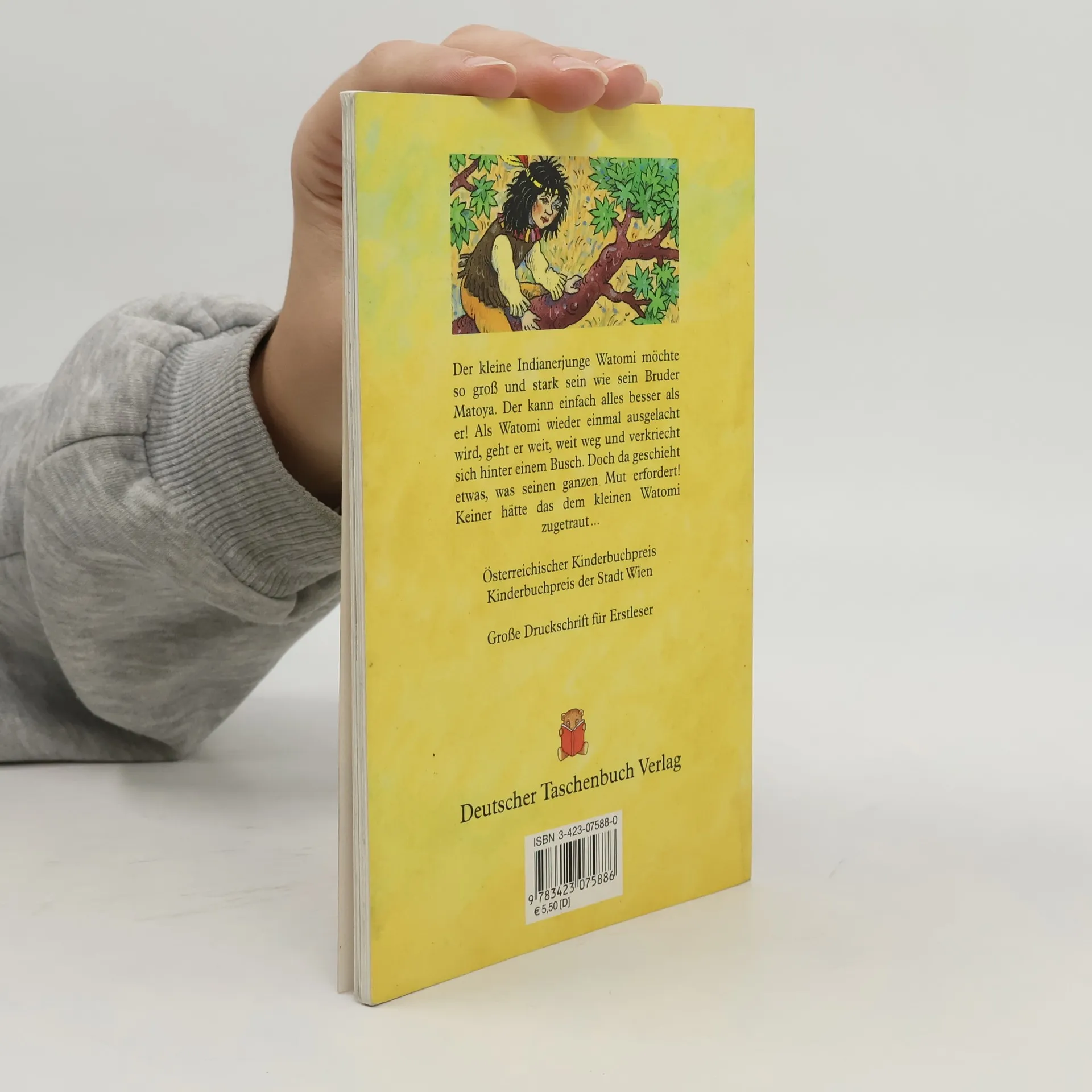 Hübsche kleine Geschichte zum Thema Indianer", an deren Ende auch Watomi dank seiner Heldentaten zu den Grossen gehört. Grosse Druckschrift. (Quelle: Verzeichnis ZKL).