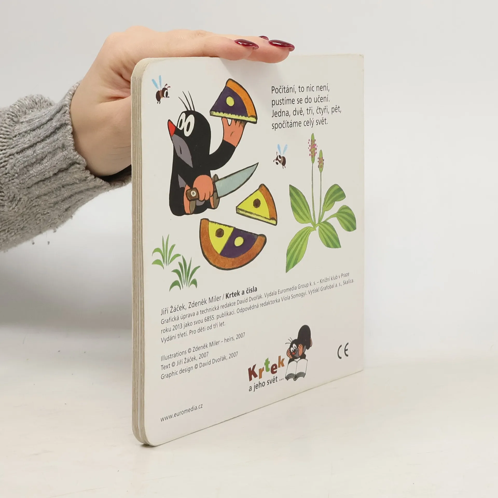 V páté z řady půvabných knížek pro ty nejmenší, kteří se teprve začínají seznamovat s taji čtení, psaní a počítání, radí Krtek a jeho kamarádi dětem, jak si poradit s počítáním. Číslovky od 1 do 10 si malí matematici mohou osvojit na zvířátkách a věcech z Krtkova světa. Kromě oblíbených živých ilustraci Zdeňka Milera jim v tom napomohou i vynalézavé verše Jiřího Žáčka.