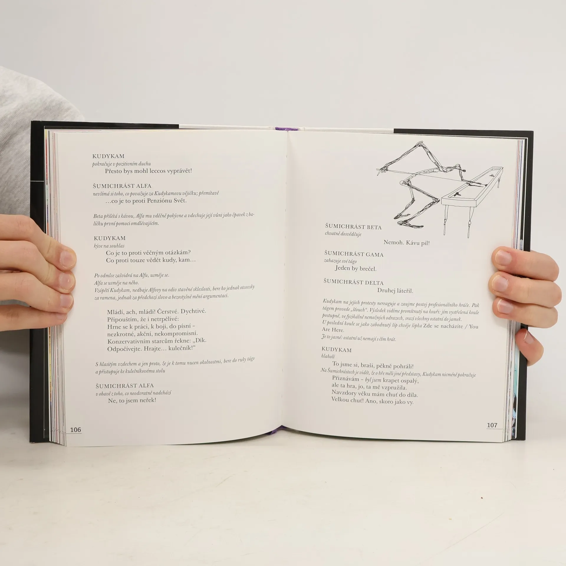 Knižní podoba libreta divadelní hry ve verších - Kudykam. Penzión Svět je rozlehlá budova, vystavěná z rozličných "možná" a "snad". Jen na nás záleží, zda zůstaneme váhat uvnitř přiděleného pokoje, anebo přikývneme vnitřnímu nepokoji a vykročíme potměšilou spletí chodeb a schodišť od jistot k nejistotám. Hrdinové Horáčkovy lyrické férie se k takovému kroku odvážili. Odvahu prokázal i sám jejich autor - už jen tím , že je na nevázané cestě nechává promlouvat výhradně řečí vázanou: v dekasylabech, i villonských baladách. Příběhu vtiskl mravní výzvu, ale nezapřel ani své okouzlení tragikomickou barvitostí, neomalenou sprostotou i vznešeností lidského mumraje.