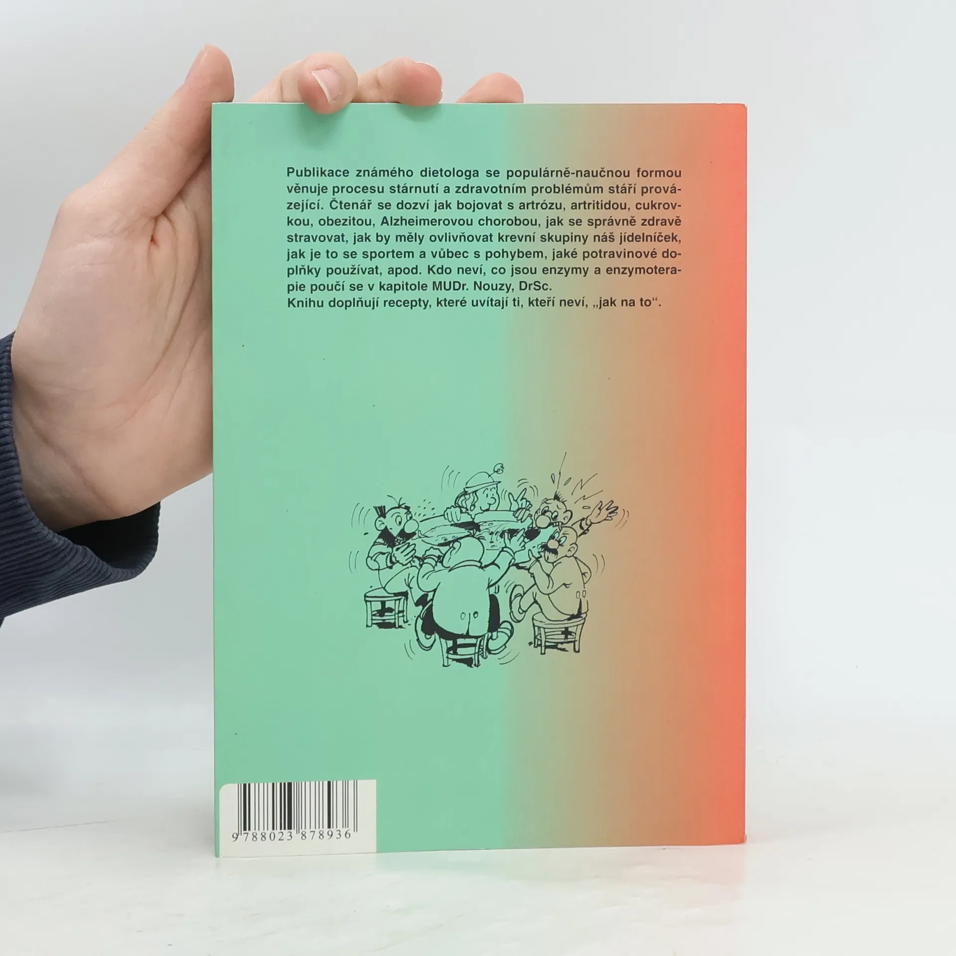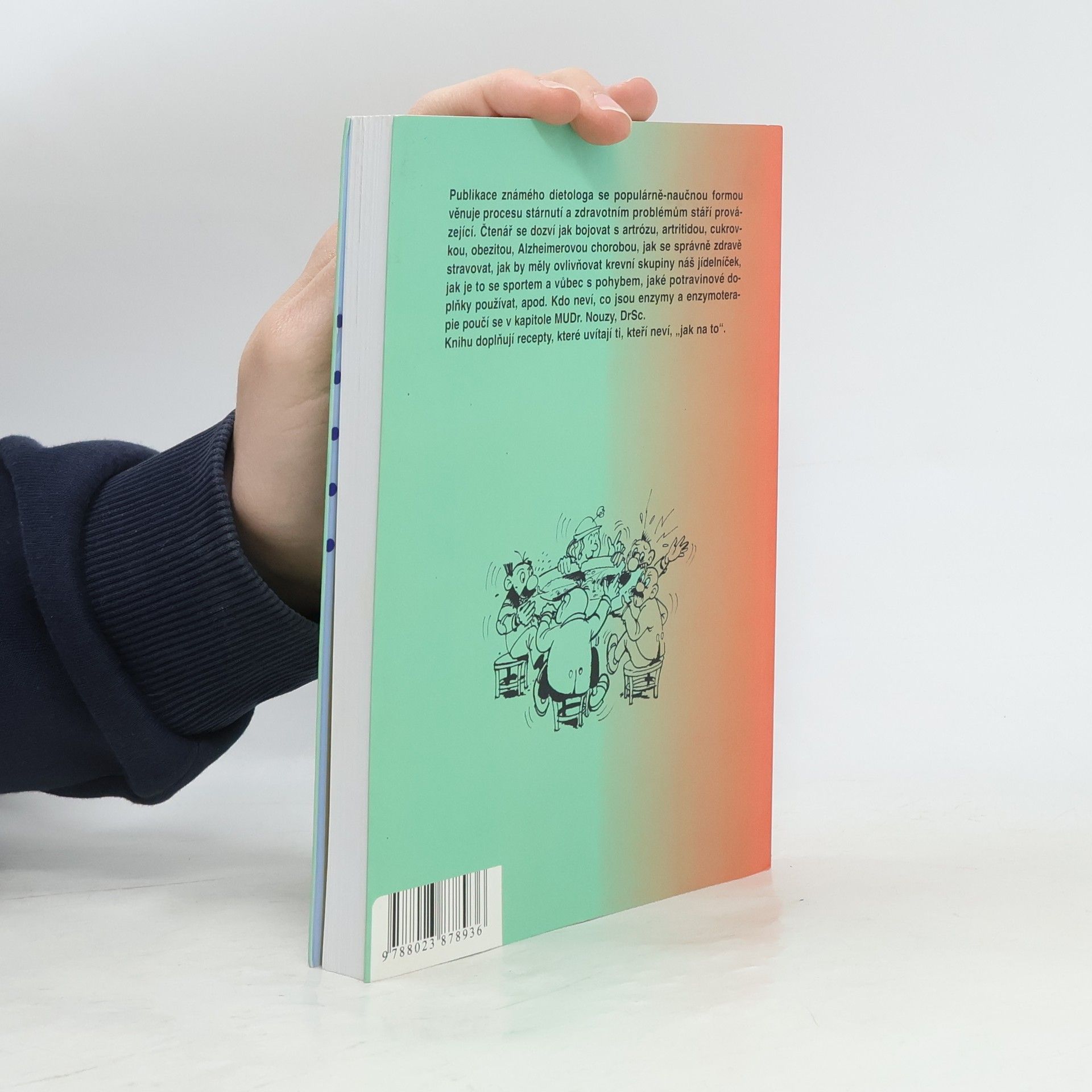 Vliv zdravé výživy na zpomalení přirozeného procesu stárnutí. Po shrnutí dosavadních vědeckých názorů na to, proč lidé stárnou, se autor pokouší místy vtipně, místy příliš odborně poučit čtenáře, proč se mají stravovat právě tak, jak v textu doporučuje. Závěr knihy tvoří úvod do teorie stravy podle krevních skupin a několik receptů, z nichž některé svým složením nepůsobí příliš zdravě.
