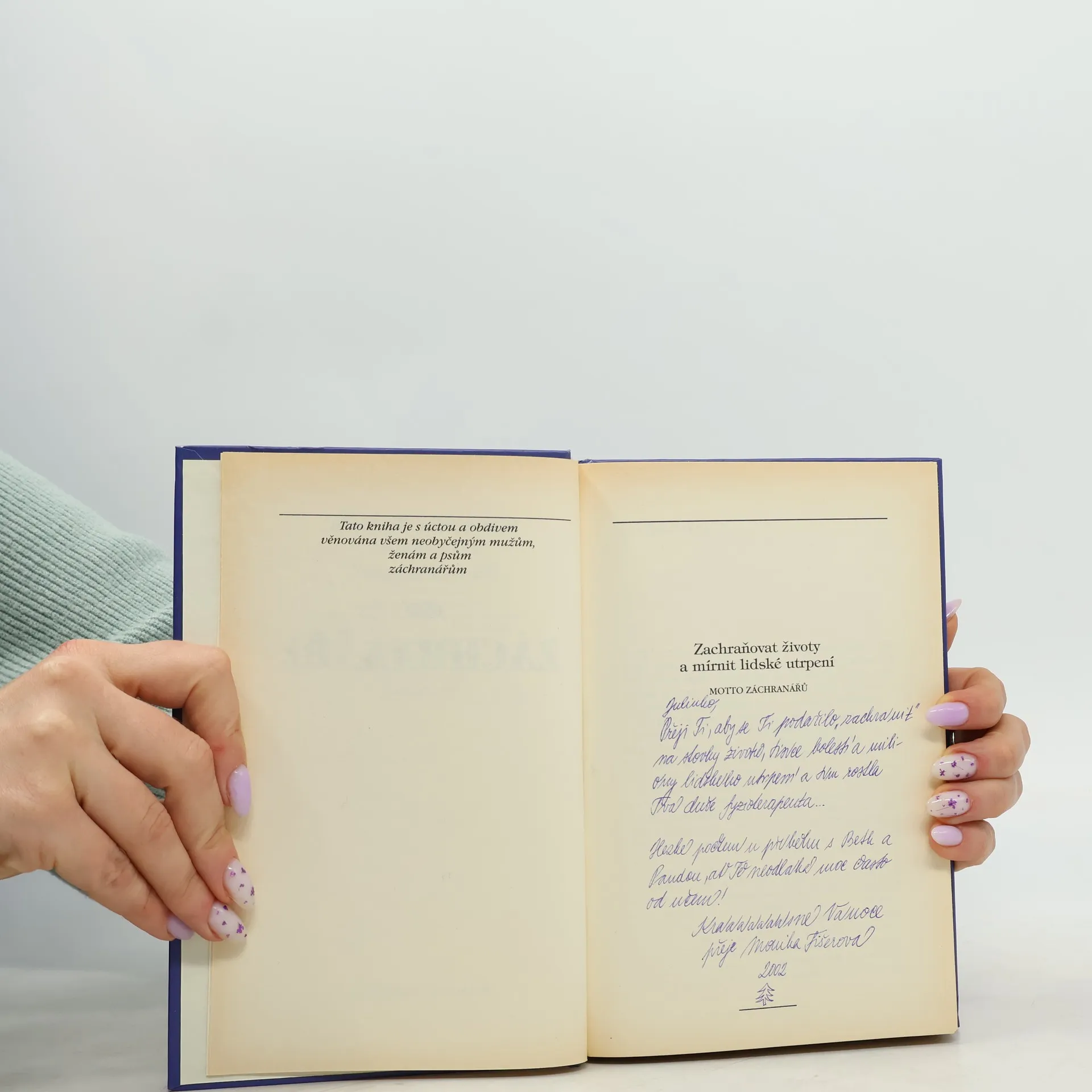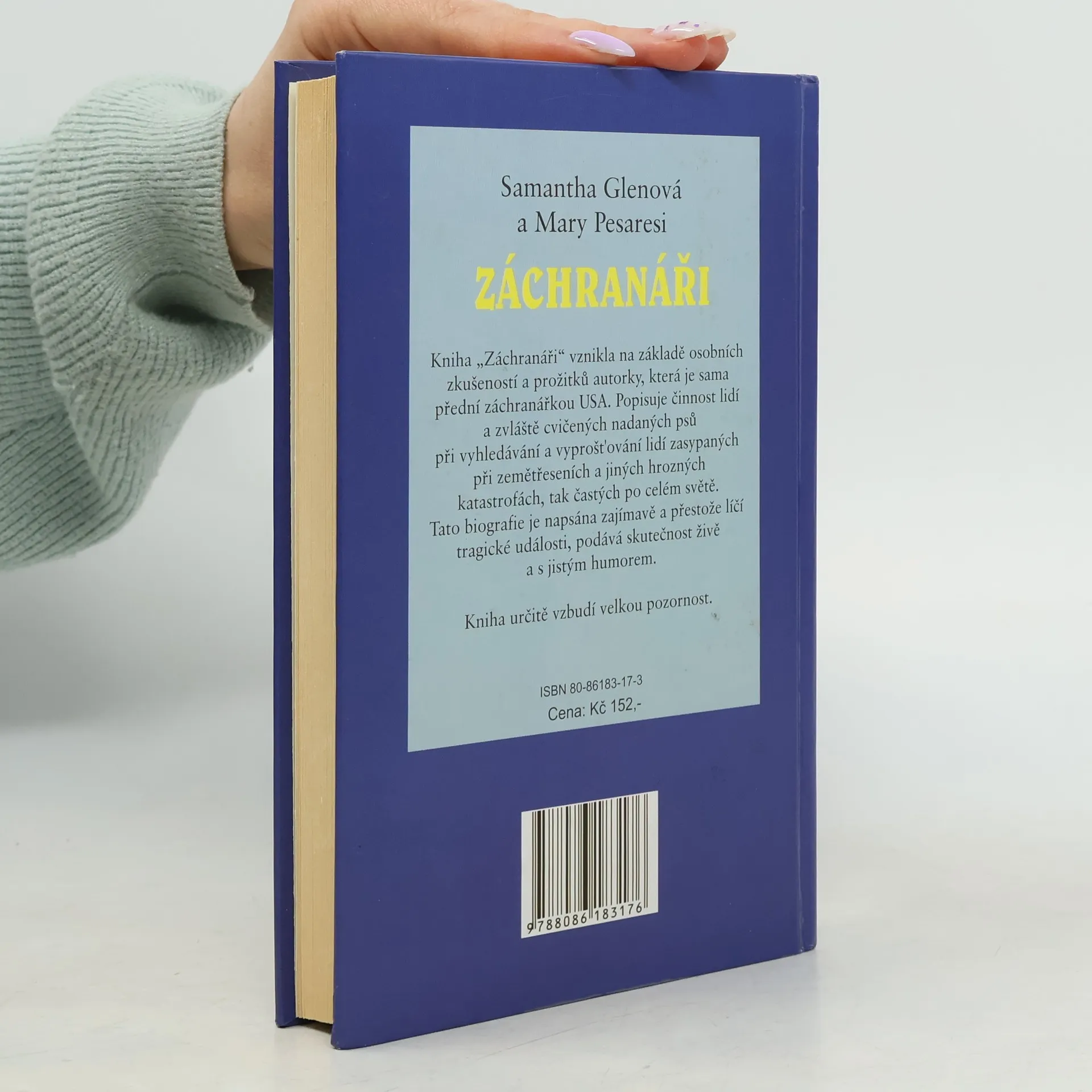 Samantha Glenová a Mary Pesaresi: Kniha popisuje činnost lidí a zvláště cvičených nadaných psů při vyhledávání a vyprošťování lidí zasypaných při zemětřeseních a jiných katastrofách. Kniha vznikla na základě osobních zkušeností a prožitků autorky, která je sama přední záchranářkou USA. Popisuje činnost lidí a zvláště cvičených nadaných psů při vyhledávání a vyprošťování lidí zasypaných při zemětřesení a jiných hrozných katastrofách, tak často po celém světě. Tato biografie je napsána zajímavě a přestože líčí tragick události, podává skutečnost živě a s jistým humorem.
