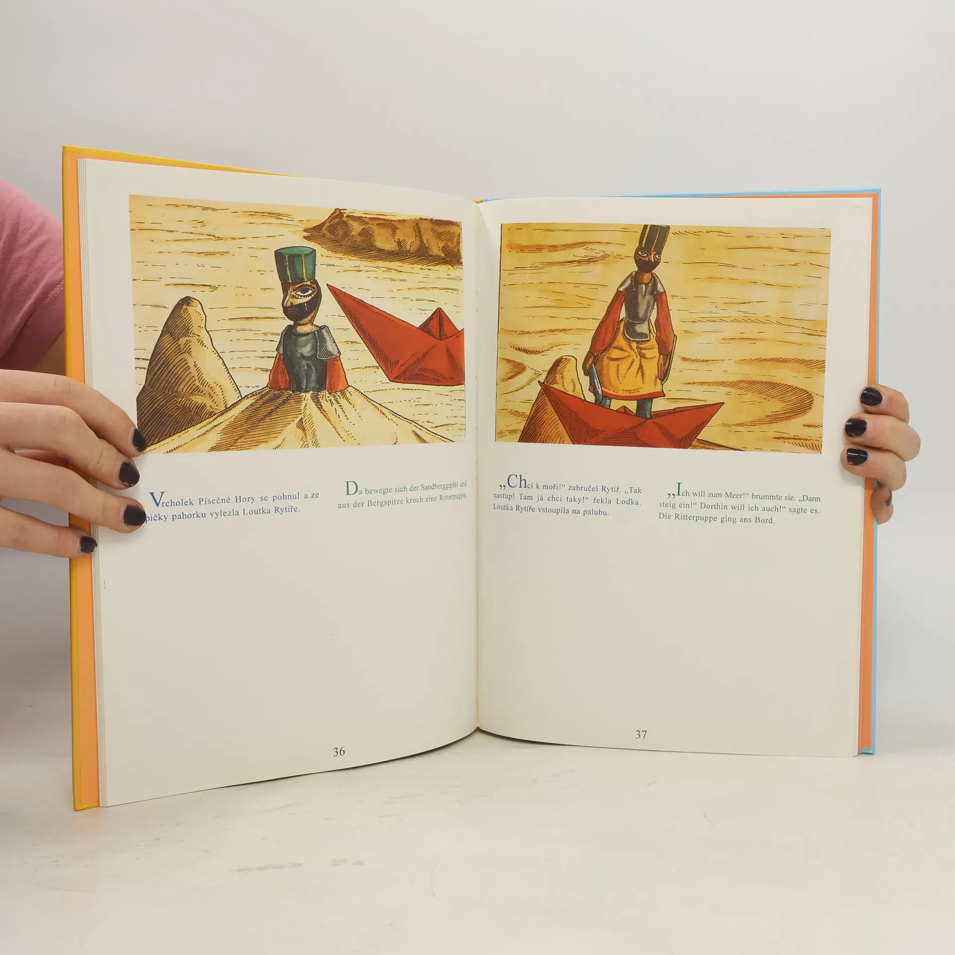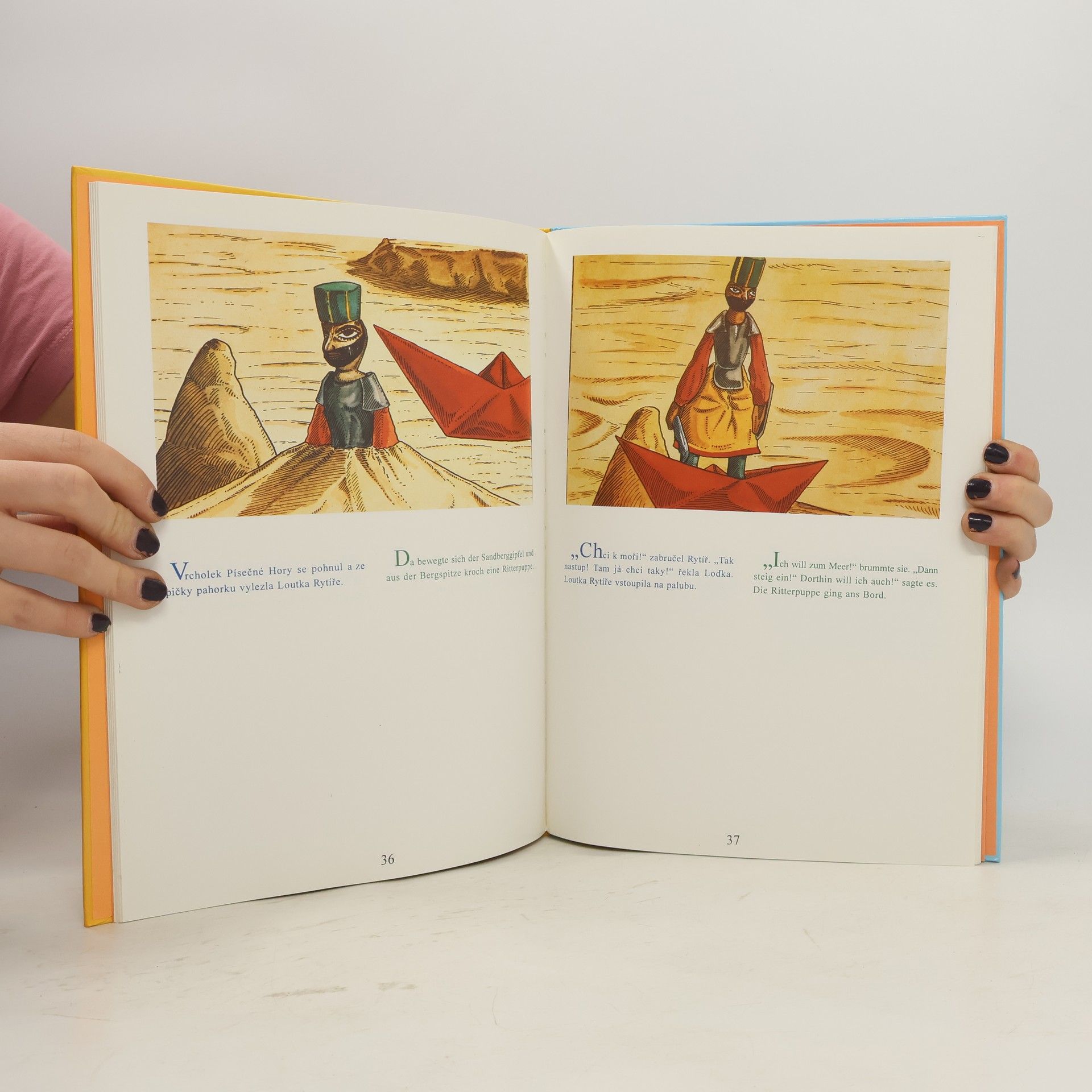 Moderní pohádka o putování papírové lodičky kolem světa je vyprávěna v češtině a souběžně i v němčině.